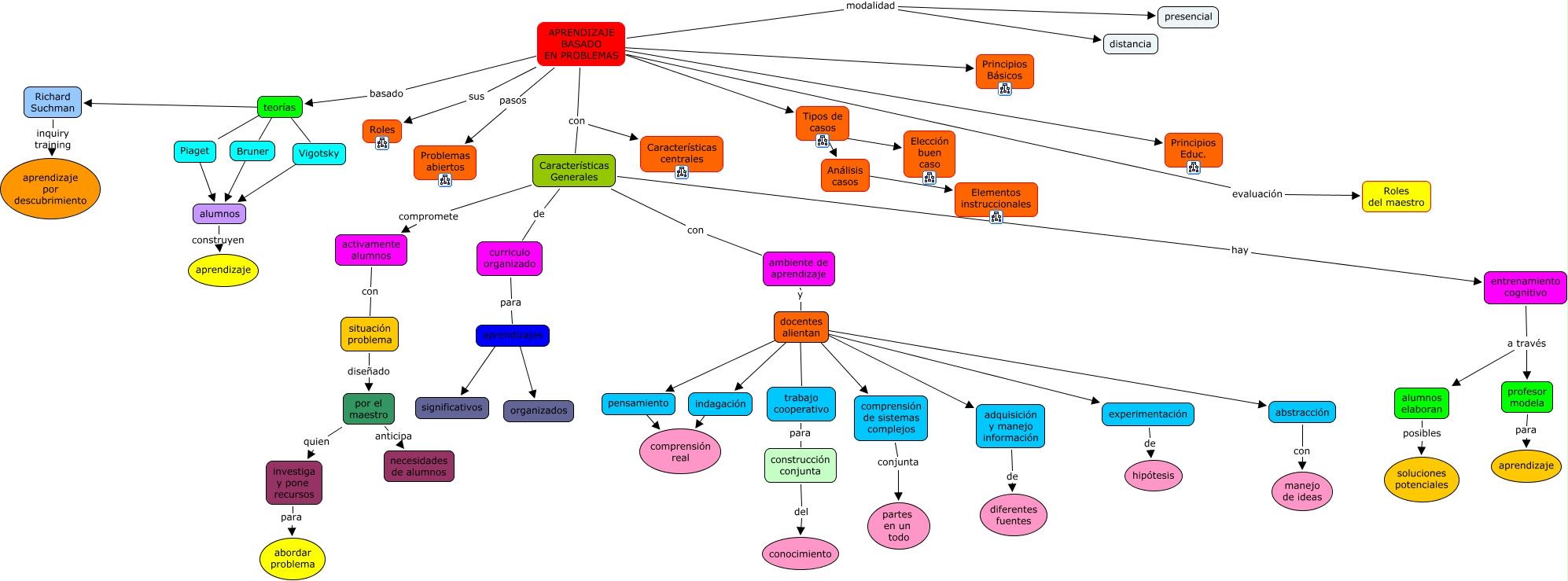 Este Cmap, tiene información relacionada con: Aprendizaje Basado en Problemas, APRENDIZAJE BASADO EN PROBLEMAS ???? Tipos de casos, APRENDIZAJE BASADO EN PROBLEMAS ???? Principios Educ., docentes alientan ???? trabajo cooperativo, APRENDIZAJE BASADO EN PROBLEMAS con Características centrales, APRENDIZAJE BASADO EN PROBLEMAS modalidad distancia, por el maestro anticipa necesidades de alumnos, trabajo cooperativo para construcción conjunta, construcción conjunta del conocimiento, aprendizajes ???? organizados, ambiente de aprendizaje y docentes alientan, Características Generales compromete activamente alumnos, Tipos de casos ???? Elección buen caso, Análisis casos ???? Elementos instruccionales, docentes alientan ???? comprensión de sistemas complejos, APRENDIZAJE BASADO EN PROBLEMAS evaluación Roles del maestro, pensamiento ???? comprensión real, alumnos elaboran posibles soluciones potenciales, teorías ???? Richard Suchman, situación problema diseñado por el maestro, APRENDIZAJE BASADO EN PROBLEMAS basado teorías