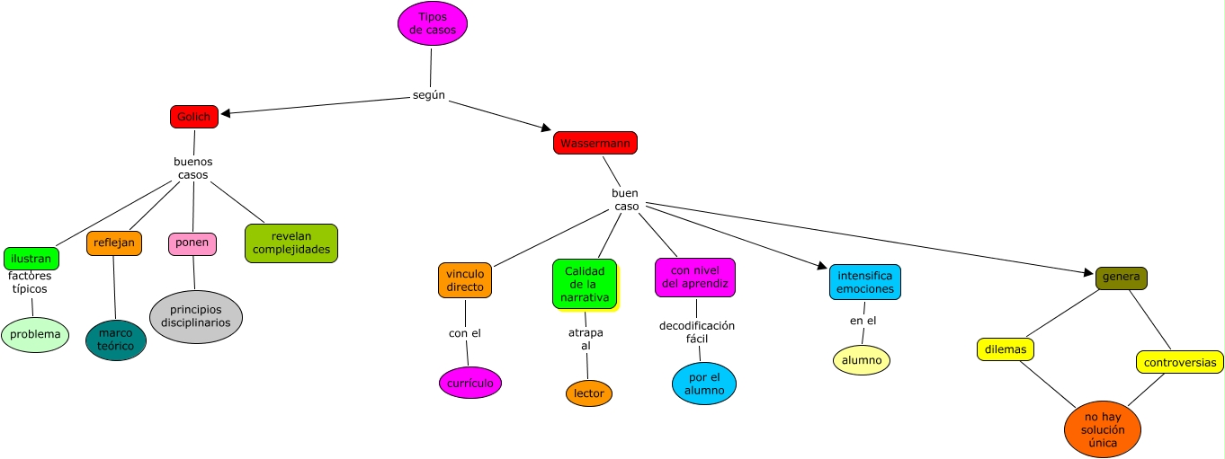 Este Cmap, tiene información relacionada con: Tipos de casos, Golich buenos casos ilustran, Wassermann buen caso Calidad de la narrativa, ponen ???? principios disciplinarios, con nivel del aprendiz decodificación fácil por el alumno, controversias ???? no hay solución única, vinculo directo con el currículo, Tipos de casos según Golich, dilemas ???? no hay solución única, intensifica emociones en el alumno, Tipos de casos según Wassermann, Golich buenos casos ponen, Wassermann buen caso intensifica emociones, Wassermann buen caso vinculo directo, Golich buenos casos reflejan, genera ???? controversias, genera ???? dilemas, Wassermann buen caso con nivel del aprendiz, Calidad de la narrativa atrapa al lector, reflejan ???? marco teórico, Wassermann buen caso genera