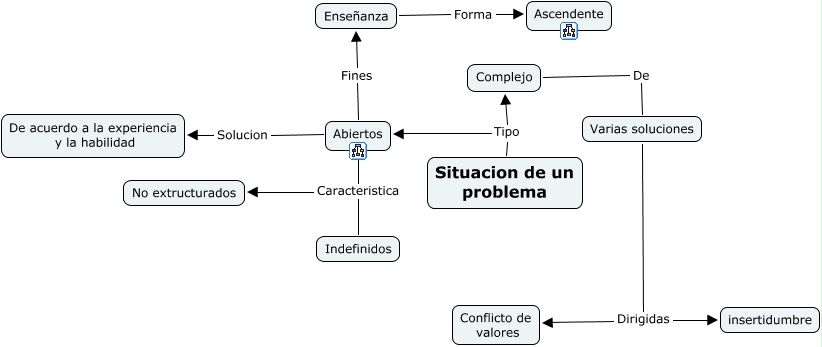 Este Cmap, tiene información relacionada con: Situacion de un problema, Situacion de un problema Tipo Abiertos, Situacion de un problema Tipo Complejo, Abiertos Caracteristica Indefinidos, Abiertos Fines Enseñanza, Abiertos Caracteristica No extructurados, Complejo De Varias soluciones, Varias soluciones Dirigidas Conflicto de valores, Varias soluciones Dirigidas insertidumbre, Enseñanza Forma Ascendente, Abiertos Solucion De acuerdo a la experiencia y la habilidad