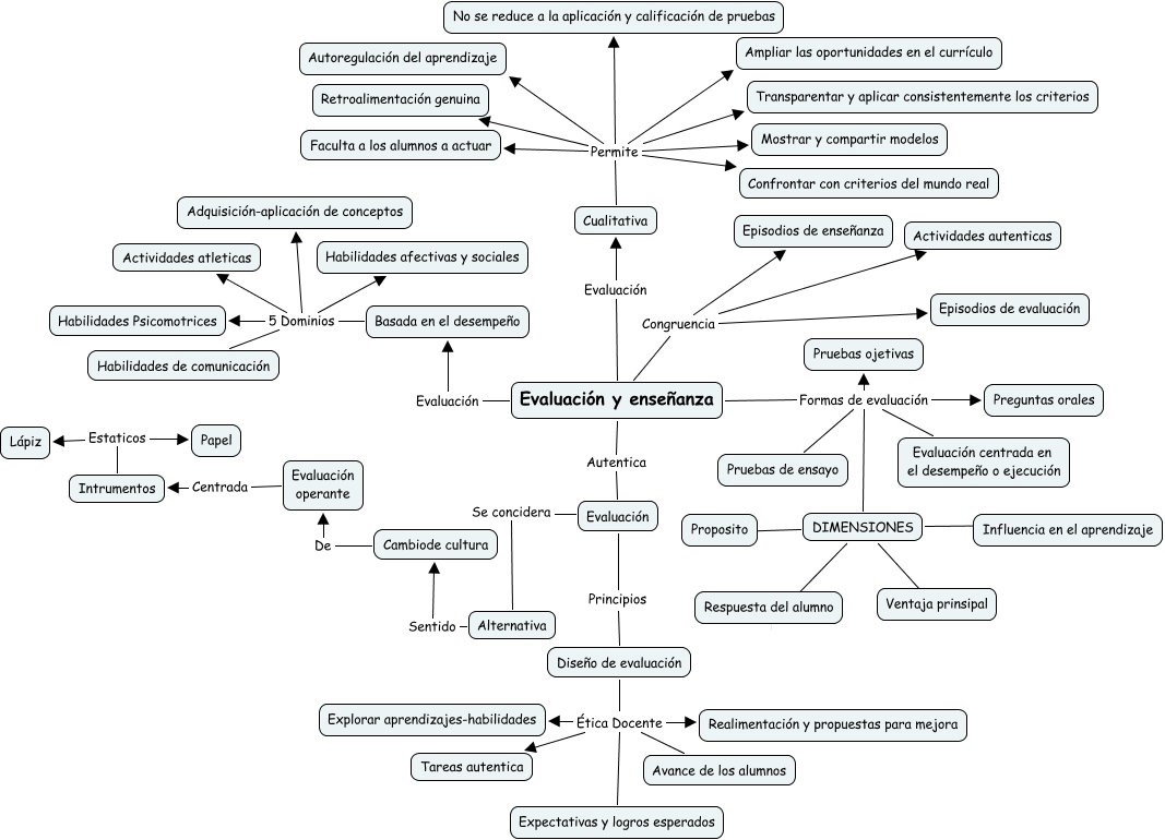 Este Cmap, tiene información relacionada con: Evaluación y enseñanza, Basada en el desempeño 5 Dominios Habilidades de comunicación, Evaluación Se concidera Alternativa, Evaluación y enseñanza Autentica Evaluación, Evaluación y enseñanza Formas de evaluación Pruebas ojetivas, Evaluación y enseñanza Congruencia Episodios de evaluación, Diseño de evaluación Ética Docente Explorar aprendizajes-habilidades, Evaluación y enseñanza Evaluación Basada en el desempeño, Cualitativa Permite Retroalimentación genuina, DIMENSIONES ???? Influencia en el aprendizaje, Evaluación operante Centrada Intrumentos, Cualitativa Permite Autoregulación del aprendizaje, Cualitativa Permite Confrontar con criterios del mundo real, Evaluación y enseñanza Formas de evaluación Evaluación centrada en el desempeño o ejecución, Basada en el desempeño 5 Dominios Habilidades afectivas y sociales, Cualitativa Permite Faculta a los alumnos a actuar, DIMENSIONES Respuesta del alumno, DIMENSIONES ???? Ventaja prinsipal, DIMENSIONES Respuesta del alumno, Cualitativa Permite Ampliar las oportunidades en el currículo, Basada en el desempeño 5 Dominios Actividades atleticas