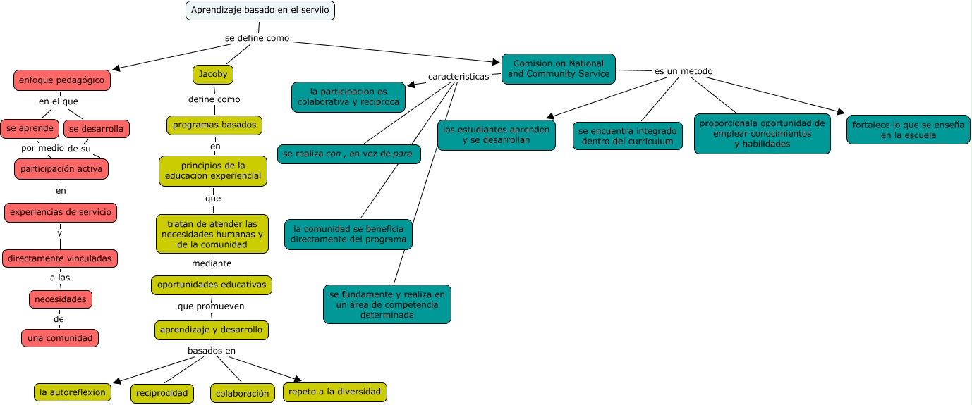 Este Cmap, tiene información relacionada con: definicion.cmap, Comision on National and Community Service es un metodo los estudiantes aprenden y se desarrollan, aprendizaje y desarrollo basados en reciprocidad, Comision on National and Community Service caracteristicas se fundamente y realiza en un área de competencia determinada, Comision on National and Community Service caracteristicas la participacion es colaborativa y reciproca, participación activa en experiencias de servicio, Comision on National and Community Service es un metodo proporcionala oportunidad de emplear conocimientos y habilidades, directamente vinculadas a las necesidades, enfoque pedagógico en el que se desarrolla, tratan de atender las necesidades humanas y de la comunidad mediante oportunidades educativas, enfoque pedagógico en el que se aprende, Comision on National and Community Service caracteristicas la comunidad se beneficia directamente del programa, Aprendizaje basado en el serviio se define como Jacoby, Jacoby define como programas basados, Comision on National and Community Service es un metodo fortalece lo que se enseña en la escuela, necesidades de una comunidad, Comision on National and Community Service es un metodo se encuentra integrado dentro del curriculum, principios de la educacion experiencial que tratan de atender las necesidades humanas y de la comunidad, aprendizaje y desarrollo basados en la autoreflexion, experiencias de servicio y directamente vinculadas, se aprende por medio participación activa