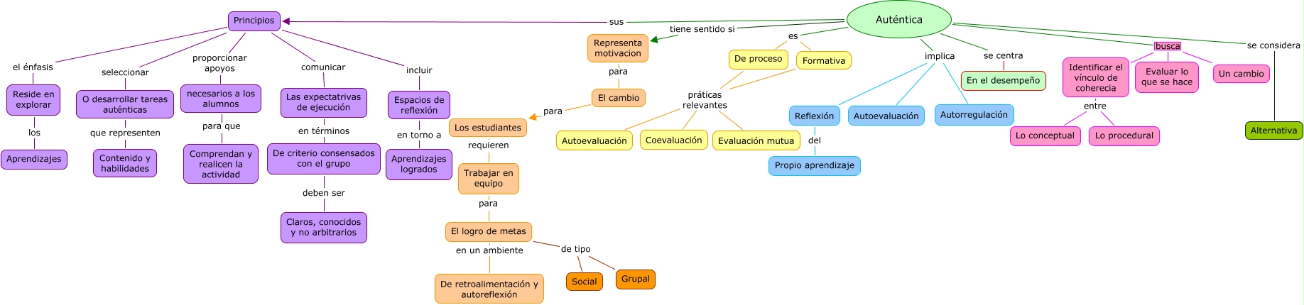 Este Cmap, tiene información relacionada con: Auténtica, Representa motivacion para El cambio, Auténtica busca Identificar el vínculo de coherecia, Auténtica busca Un cambio, De proceso práticas relevantes Autoevaluación, El logro de metas de tipo Social, Auténtica implica Autoevaluación, Auténtica tiene sentido si Representa motivacion, Auténtica busca Evaluar lo que se hace, Principios el énfasis Reside en explorar, El cambio para Los estudiantes, Auténtica sus Principios, Espacios de reflexión en torno a Aprendizajes logrados, Las expectatrivas de ejecución en términos De criterio consensados con el grupo, Principios comunicar Las expectatrivas de ejecución, Principios incluir Espacios de reflexión, El logro de metas de tipo Grupal, Auténtica implica Autorregulación, Formativa práticas relevantes Autoevaluación, Auténtica se considera Alternativa, Principios seleccionar O desarrollar tareas auténticas
