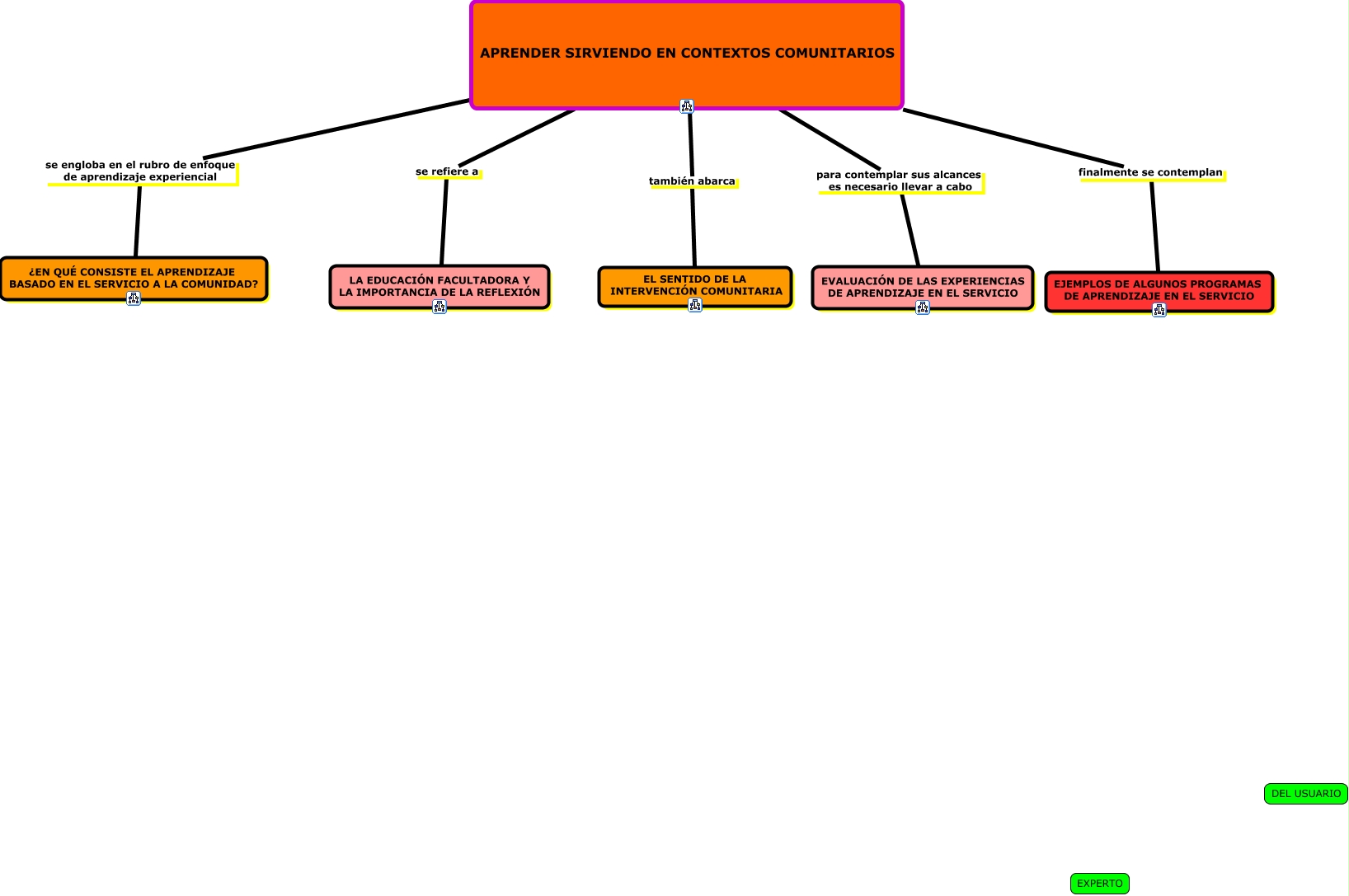 Este Cmap, tiene información relacionada con: CAP. 4, APRENDER SIRVIENDO EN CONTEXTOS COMUNITARIOS para contemplar sus alcances es necesario llevar a cabo EVALUACIÓN DE LAS EXPERIENCIAS DE APRENDIZAJE EN EL SERVICIO, APRENDER SIRVIENDO EN CONTEXTOS COMUNITARIOS también abarca EL SENTIDO DE LA INTERVENCIÓN COMUNITARIA, APRENDER SIRVIENDO EN CONTEXTOS COMUNITARIOS finalmente se contemplan EJEMPLOS DE ALGUNOS PROGRAMAS DE APRENDIZAJE EN EL SERVICIO, APRENDER SIRVIENDO EN CONTEXTOS COMUNITARIOS se engloba en el rubro de enfoque de aprendizaje experiencial ¿EN QUÉ CONSISTE EL APRENDIZAJE BASADO EN EL SERVICIO A LA COMUNIDAD?, APRENDER SIRVIENDO EN CONTEXTOS COMUNITARIOS se refiere a LA EDUCACIÓN FACULTADORA Y LA IMPORTANCIA DE LA REFLEXIÓN