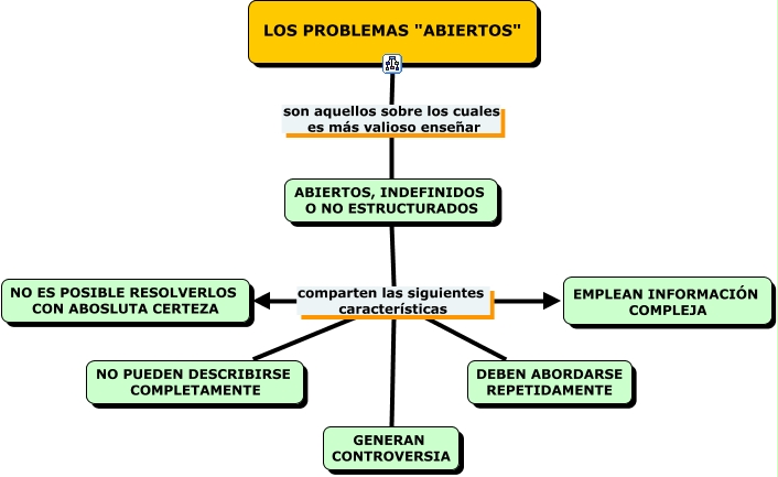 Este Cmap, tiene información relacionada con: CAP. 3 C, LOS PROBLEMAS "ABIERTOS" son aquellos sobre los cuales es más valioso enseñar ABIERTOS, INDEFINIDOS O NO ESTRUCTURADOS, ABIERTOS, INDEFINIDOS O NO ESTRUCTURADOS comparten las siguientes características GENERAN CONTROVERSIA, ABIERTOS, INDEFINIDOS O NO ESTRUCTURADOS comparten las siguientes características EMPLEAN INFORMACIÓN COMPLEJA, ABIERTOS, INDEFINIDOS O NO ESTRUCTURADOS comparten las siguientes características NO ES POSIBLE RESOLVERLOS CON ABOSLUTA CERTEZA, ABIERTOS, INDEFINIDOS O NO ESTRUCTURADOS comparten las siguientes características DEBEN ABORDARSE REPETIDAMENTE, ABIERTOS, INDEFINIDOS O NO ESTRUCTURADOS comparten las siguientes características NO PUEDEN DESCRIBIRSE COMPLETAMENTE