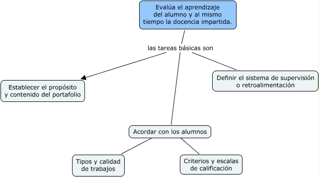 Este Cmap, tiene información relacionada con: 30. Evalúa el aprendizaje Cap. 5, Evalúa el aprendizaje del alumno y al mismo tiempo la docencia impartida. las tareas básicas son Establecer el propósito y contenido del portafolio, Acordar con los alumnos ???? Criterios y escalas de calificación, Evalúa el aprendizaje del alumno y al mismo tiempo la docencia impartida. las tareas básicas son Definir el sistema de supervisión o retroalimentación, Evalúa el aprendizaje del alumno y al mismo tiempo la docencia impartida. las tareas básicas son Acordar con los alumnos, Acordar con los alumnos ???? Tipos y calidad de trabajos