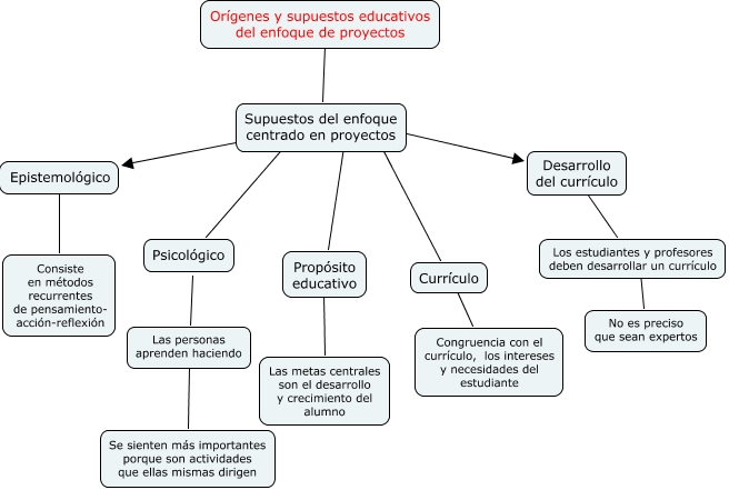 Este Cmap, tiene información relacionada con: 08. Orígenes y supuestos educativos CAPÍTULO 2, Desarrollo del currículo ???? Los estudiantes y profesores deben desarrollar un currículo, Orígenes y supuestos educativos del enfoque de proyectos ???? Supuestos del enfoque centrado en proyectos, Supuestos del enfoque centrado en proyectos ???? Epistemológico, Las personas aprenden haciendo ???? Se sienten más importantes porque son actividades que ellas mismas dirigen, Supuestos del enfoque centrado en proyectos ???? Desarrollo del currículo, Supuestos del enfoque centrado en proyectos ???? Psicológico, Psicológico ???? Las personas aprenden haciendo, Epistemológico ???? Consiste en métodos recurrentes de pensamiento- acción-reflexión, Propósito educativo ???? Las metas centrales son el desarrollo y crecimiento del alumno, Currículo ???? Congruencia con el currículo, los intereses y necesidades del estudiante, Supuestos del enfoque centrado en proyectos ???? Propósito educativo, Supuestos del enfoque centrado en proyectos ???? Currículo, Los estudiantes y profesores deben desarrollar un currículo ???? No es preciso que sean expertos