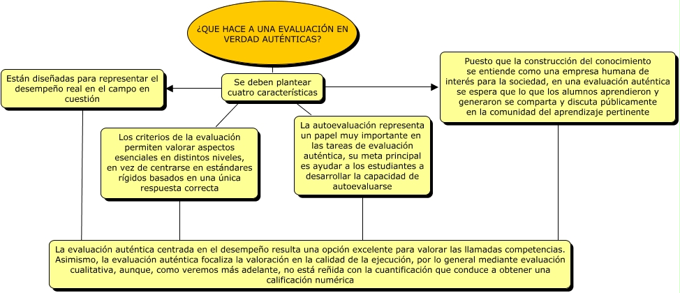 Este Cmap, tiene información relacionada con: ev aut, Los criterios de la evaluación permiten valorar aspectos esenciales en distintos niveles, en vez de centrarse en estándares rígidos basados en una única respuesta correcta ???? La evaluación auténtica centrada en el desempeño resulta una opción excelente para valorar las llamadas competencias. Asimismo, la evaluación auténtica focaliza la valoración en la calidad de la ejecución, por lo general mediante evaluación cualitativa, aunque, como veremos más adelante, no está reñida con la cuantificación que conduce a obtener una calificación numérica, La autoevaluación representa un papel muy importante en las tareas de evaluación auténtica, su meta principal es ayudar a los estudiantes a desarrollar la capacidad de autoevaluarse ???? La evaluación auténtica centrada en el desempeño resulta una opción excelente para valorar las llamadas competencias. Asimismo, la evaluación auténtica focaliza la valoración en la calidad de la ejecución, por lo general mediante evaluación cualitativa, aunque, como veremos más adelante, no está reñida con la cuantificación que conduce a obtener una calificación numérica, Se deben plantear cuatro características ???? Están diseñadas para representar el desempeño real en el campo en cuestión, Se deben plantear cuatro características ???? Los criterios de la evaluación permiten valorar aspectos esenciales en distintos niveles, en vez de centrarse en estándares rígidos basados en una única respuesta correcta, ¿QUE HACE A UNA EVALUACIÓN EN VERDAD AUTÉNTICAS? ???? Se deben plantear cuatro características, Puesto que la construcción del conocimiento se entiende como una empresa humana de interés para la sociedad, en una evaluación auténtica se espera que lo que los alumnos aprendieron y generaron se comparta y discuta públicamente en la comunidad del aprendizaje pertinente ???? La evaluación auténtica centrada en el desempeño resulta una opción excelente para valorar las llamadas competencias. Asimismo, la evaluación auténtica focaliza la valoración en la calidad de la ejecución, por lo general mediante evaluación cualitativa, aunque, como veremos más adelante, no está reñida con la cuantificación que conduce a obtener una calificación numérica, Se deben plantear cuatro características ???? La autoevaluación representa un papel muy importante en las tareas de evaluación auténtica, su meta principal es ayudar a los estudiantes a desarrollar la capacidad de autoevaluarse, Están diseñadas para representar el desempeño real en el campo en cuestión ???? La evaluación auténtica centrada en el desempeño resulta una opción excelente para valorar las llamadas competencias. Asimismo, la evaluación auténtica focaliza la valoración en la calidad de la ejecución, por lo general mediante evaluación cualitativa, aunque, como veremos más adelante, no está reñida con la cuantificación que conduce a obtener una calificación numérica, Se deben plantear cuatro características ???? Puesto que la construcción del conocimiento se entiende como una empresa humana de interés para la sociedad, en una evaluación auténtica se espera que lo que los alumnos aprendieron y generaron se comparta y discuta públicamente en la comunidad del aprendizaje pertinente
