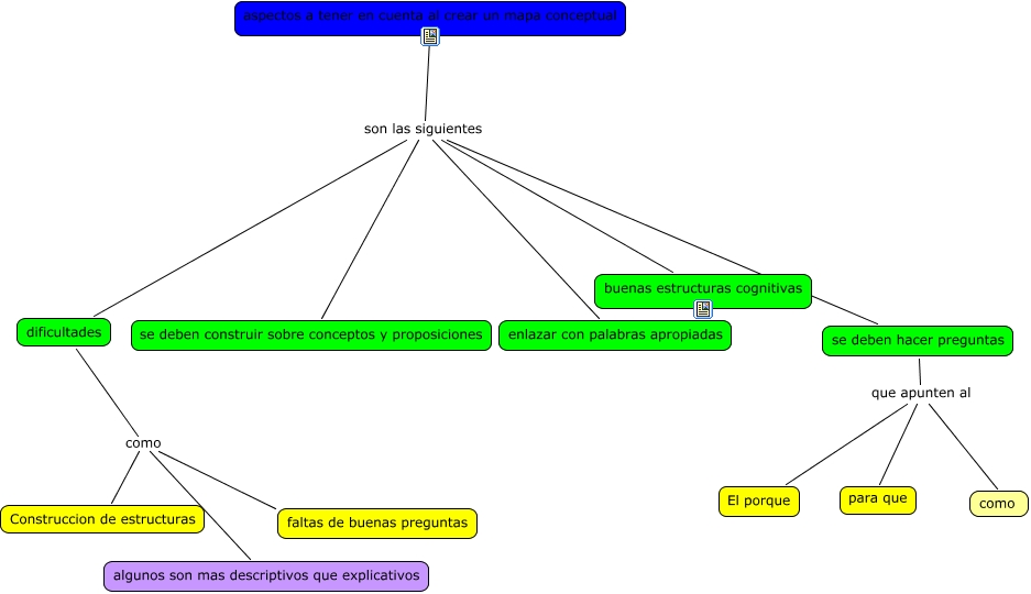Este Cmap, tiene información relacionada con: elaboracion de mapas conceptuales, aspectos a tener en cuenta al crear un mapa conceptual son las siguientes buenas estructuras cognitivas, dificultades como Construccion de estructuras, se deben hacer preguntas que apunten al El porque, aspectos a tener en cuenta al crear un mapa conceptual son las siguientes dificultades, se deben hacer preguntas que apunten al para que, aspectos a tener en cuenta al crear un mapa conceptual son las siguientes se deben construir sobre conceptos y proposiciones, aspectos a tener en cuenta al crear un mapa conceptual son las siguientes se deben hacer preguntas, aspectos a tener en cuenta al crear un mapa conceptual son las siguientes enlazar con palabras apropiadas, se deben hacer preguntas que apunten al como, dificultades como faltas de buenas preguntas, dificultades como algunos son mas descriptivos que explicativos