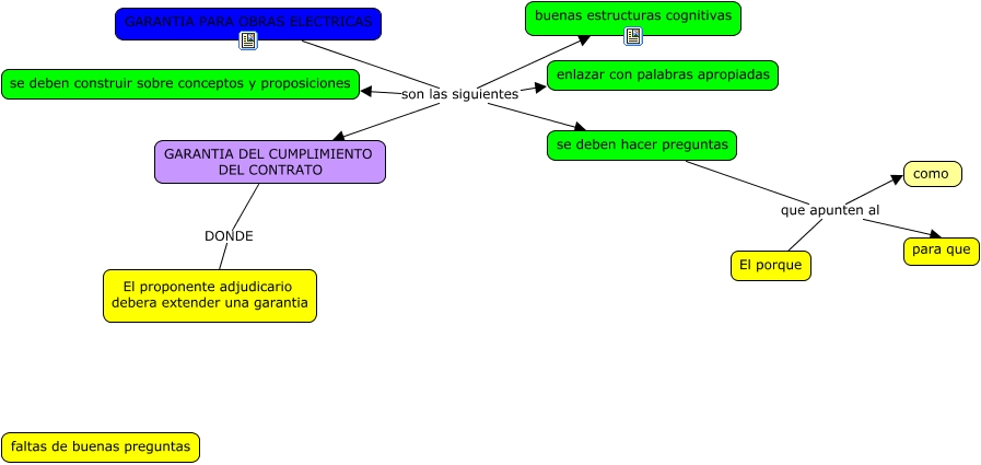 Este Cmap, tiene información relacionada con: elaboracion de mapas conceptuales, GARANTIA PARA OBRAS ELECTRICAS son las siguientes buenas estructuras cognitivas, GARANTIA DEL CUMPLIMIENTO DEL CONTRATO DONDE El proponente adjudicario debera extender una garantia, se deben hacer preguntas que apunten al como, GARANTIA PARA OBRAS ELECTRICAS son las siguientes GARANTIA DEL CUMPLIMIENTO DEL CONTRATO, GARANTIA PARA OBRAS ELECTRICAS son las siguientes se deben hacer preguntas, se deben hacer preguntas que apunten al El porque, GARANTIA PARA OBRAS ELECTRICAS son las siguientes se deben construir sobre conceptos y proposiciones, se deben hacer preguntas que apunten al para que, GARANTIA PARA OBRAS ELECTRICAS son las siguientes enlazar con palabras apropiadas