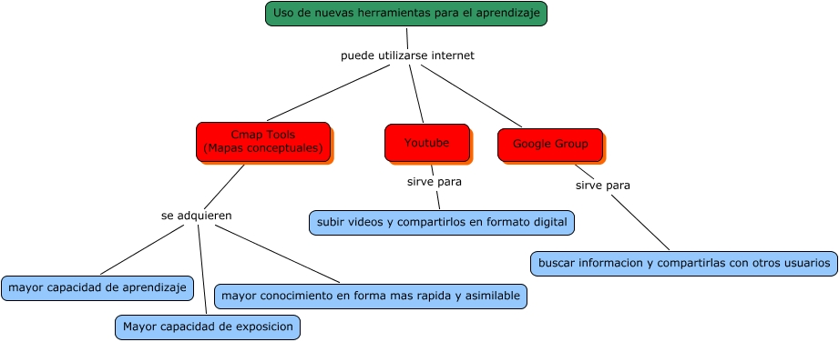 Este Cmap, tiene información relacionada con: herramientas para el aprendizaje, Cmap Tools (Mapas conceptuales) se adquieren mayor conocimiento en forma mas rapida y asimilable, Uso de nuevas herramientas para el aprendizaje puede utilizarse internet Youtube, Google Group sirve para buscar informacion y compartirlas con otros usuarios, Uso de nuevas herramientas para el aprendizaje puede utilizarse internet Cmap Tools (Mapas conceptuales), Youtube sirve para subir videos y compartirlos en formato digital, Uso de nuevas herramientas para el aprendizaje puede utilizarse internet Google Group, Cmap Tools (Mapas conceptuales) se adquieren Mayor capacidad de exposicion, Cmap Tools (Mapas conceptuales) se adquieren mayor capacidad de aprendizaje