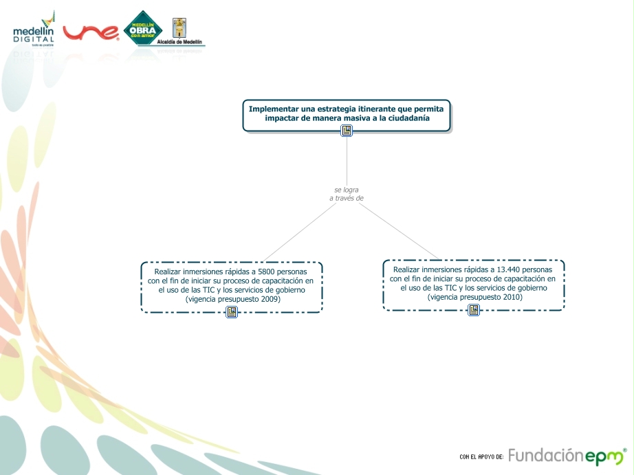 Este Cmap, tiene información relacionada con: Gobierno-Entregables 9, Implementar una estrategia itinerante que permita impactar de manera masiva a la ciudadanía se logra a través de Realizar inmersiones rápidas a 13.440 personas con el fin de iniciar su proceso de capacitación en el uso de las TIC y los servicios de gobierno (vigencia presupuesto 2010), Implementar una estrategia itinerante que permita impactar de manera masiva a la ciudadanía se logra a través de Realizar inmersiones rápidas a 5800 personas con el fin de iniciar su proceso de capacitación en el uso de las TIC y los servicios de gobierno (vigencia presupuesto 2009)