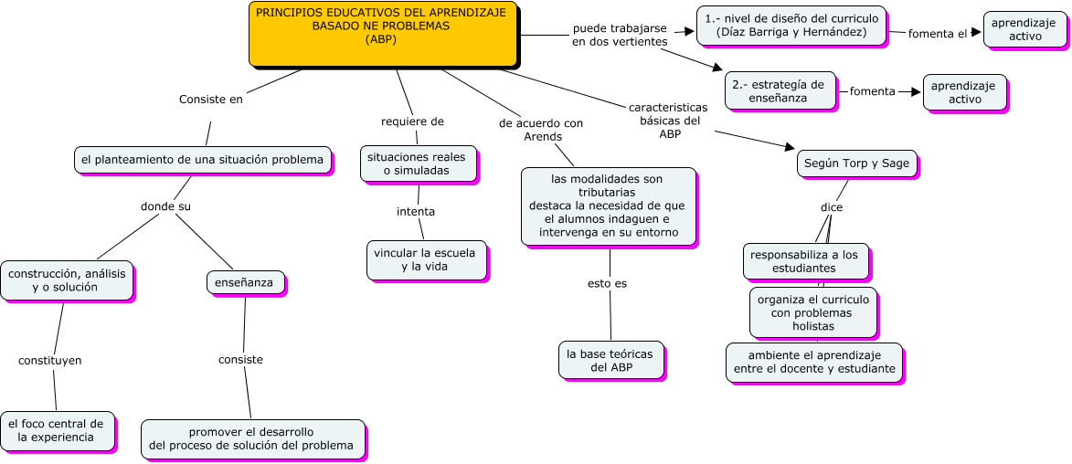 Este Cmap, tiene información relacionada con: CAP 3.1, Según Torp y Sage dice organiza el curriculo con problemas holistas, Según Torp y Sage dice ambiente el aprendizaje entre el docente y estudiante, PRINCIPIOS EDUCATIVOS DEL APRENDIZAJE BASADO NE PROBLEMAS (ABP) puede trabajarse en dos vertientes 2.- estrategía de enseñanza, enseñanza consiste promover el desarrollo del proceso de solución del problema, PRINCIPIOS EDUCATIVOS DEL APRENDIZAJE BASADO NE PROBLEMAS (ABP) puede trabajarse en dos vertientes 1.- nivel de diseño del curriculo (Díaz Barriga y Hernández), construcción, análisis y o solución constituyen el foco central de la experiencia, el planteamiento de una situación problema donde su construcción, análisis y o solución, 2.- estrategía de enseñanza fomenta aprendizaje activo, Según Torp y Sage dice responsabiliza a los estudiantes, PRINCIPIOS EDUCATIVOS DEL APRENDIZAJE BASADO NE PROBLEMAS (ABP) Consiste en el planteamiento de una situación problema, las modalidades son tributarias destaca la necesidad de que el alumnos indaguen e intervenga en su entorno esto es la base teóricas del ABP, el planteamiento de una situación problema donde su enseñanza, PRINCIPIOS EDUCATIVOS DEL APRENDIZAJE BASADO NE PROBLEMAS (ABP) de acuerdo con Arends las modalidades son tributarias destaca la necesidad de que el alumnos indaguen e intervenga en su entorno, situaciones reales o simuladas intenta vincular la escuela y la vida, 1.- nivel de diseño del curriculo (Díaz Barriga y Hernández) fomenta el aprendizaje activo, PRINCIPIOS EDUCATIVOS DEL APRENDIZAJE BASADO NE PROBLEMAS (ABP) caracteristicas básicas del ABP Según Torp y Sage, PRINCIPIOS EDUCATIVOS DEL APRENDIZAJE BASADO NE PROBLEMAS (ABP) requiere de situaciones reales o simuladas