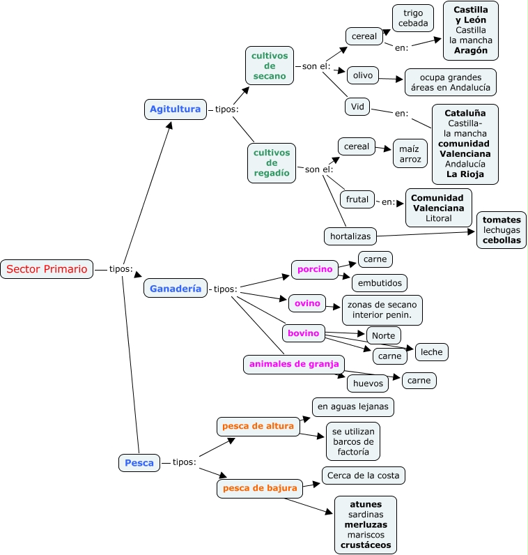 Este Cmap, tiene información relacionada con: Sector primario, porcino ???? embutidos, cultivos de regadío son el: frutal, animales de granja ???? carne, cereal en: Castilla y León Castilla la mancha Aragón, cultivos de regadío son el: hortalizas, Ganadería tipos: animales de granja, Sector Primario tipos: Agitultura, pesca de altura ???? en aguas lejanas, cereal ???? maíz arroz, Sector Primario tipos: Ganadería, Agitultura tipos: cultivos de regadío, cultivos de regadío son el: cereal, hortalizas ???? tomates lechugas cebollas, Pesca tipos: pesca de bajura, cultivos de secano son el: Vid, bovino ???? carne, Pesca tipos: pesca de altura, cereal ???? trigo cebada, Ganadería tipos: bovino, Agitultura tipos: cultivos de secano