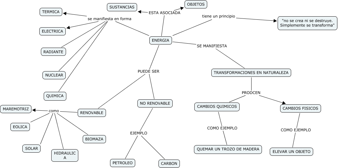 Este Cmap, tiene información relacionada con: LA ENERGIA_profesor, ENERGIA se manifiesta en forma NUCLEAR, TRANSFORMACIONES EN NATURALEZA PRODCEN CAMBIOS FISICOS, CAMBIOS FISICOS COMO EJEMPLO ELEVAR UN OBJETO, RENOVABLE como HIDRAULIC A, ENERGIA se manifiesta en forma TERMICA, RENOVABLE como SOLAR, CAMBIOS QUIMICOS COMO EJEMPLO QUEMAR UN TROZO DE MADERA, RENOVABLE como EOLICA, ENERGIA se manifiesta en forma ELECTRICA, RENOVABLE como BIOMAZA, ENERGIA PUEDE SER RENOVABLE, ENERGIA tiene un principio "no se crea ni se destruye. Simplemente se transforma", ENERGIA PUEDE SER NO RENOVABLE, ENERGIA ESTA ASOCIADA OBJETOS, TRANSFORMACIONES EN NATURALEZA PRODCEN CAMBIOS QUIMICOS, ENERGIA ESTA ASOCIADA SUSTANCIAS, ENERGIA SE MANIFIESTA TRANSFORMACIONES EN NATURALEZA, NO RENOVABLE EJEMPLO PETROLEO, ENERGIA se manifiesta en forma RADIANTE, ENERGIA se manifiesta en forma QUIMICA
