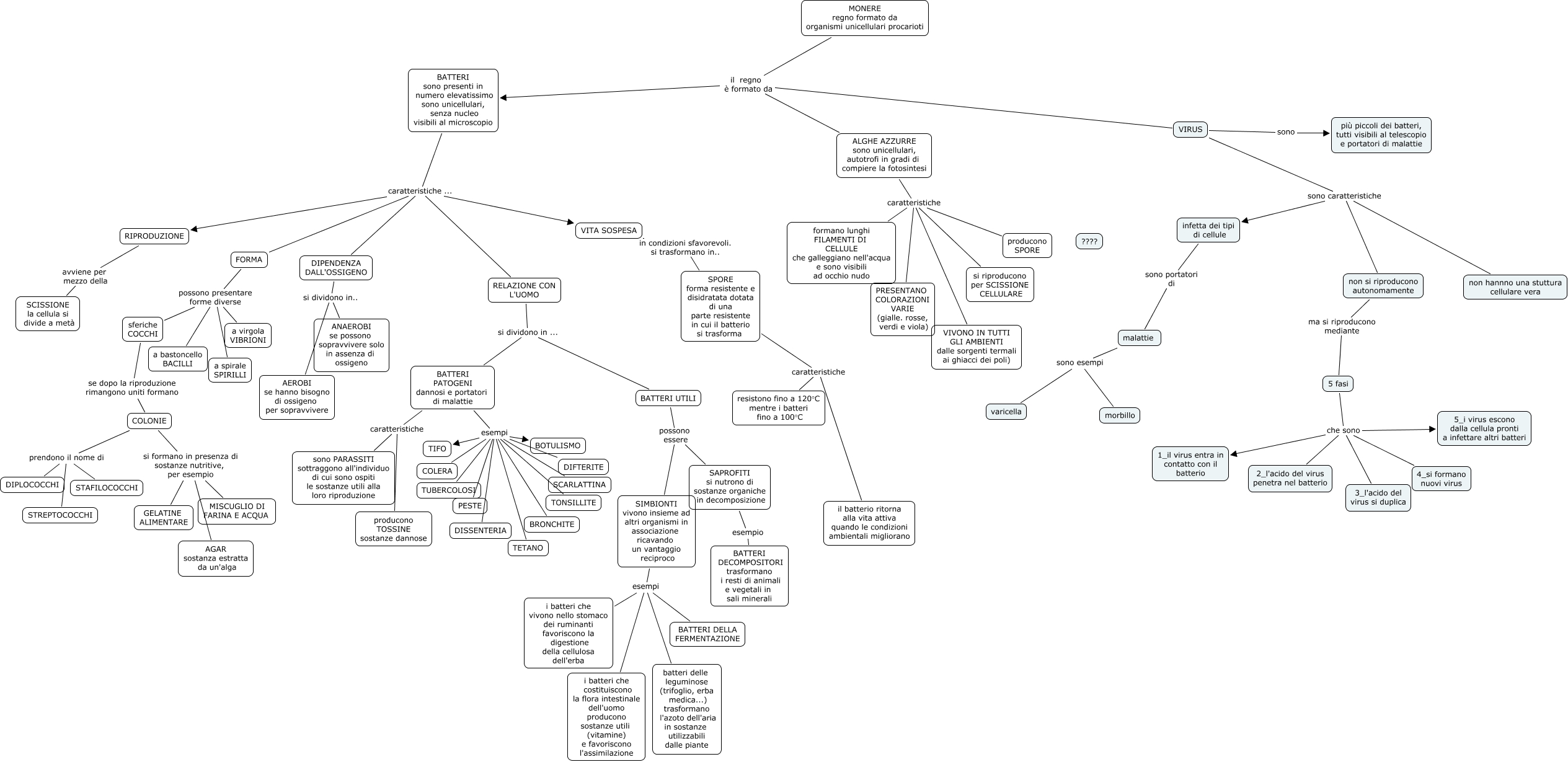 Questa Cmap, creata con IHMC CmapTools, contiene informazioni relative a: giuseppe_perbacco_ve_biricchino_pag.188-189-190-191, SIMBIONTI vivono insieme ad altri organismi in associazione ricavando un vantaggio reciproco esempi i batteri che costituiscono la flora intestinale dell'uomo producono sostanze utili (vitamine) e favoriscono l'assimilazione, malattie sono esempi morbillo, 5 fasi che sono 3_l'acido del virus si duplica, COLONIE prendono il nome di STREPTOCOCCHI, COLONIE prendono il nome di DIPLOCOCCHI, BATTERI PATOGENI dannosi e portatori di malattie esempi TETANO, ALGHE AZZURRE sono unicellulari, autotrofi in gradi di compiere la fotosintesi caratteristiche VIVONO IN TUTTI GLI AMBIENTI dalle sorgenti termali ai ghiacci dei poli), BATTERI UTILI possono essere SIMBIONTI vivono insieme ad altri organismi in associazione ricavando un vantaggio reciproco, ALGHE AZZURRE sono unicellulari, autotrofi in gradi di compiere la fotosintesi caratteristiche si riproducono per SCISSIONE CELLULARE, BATTERI PATOGENI dannosi e portatori di malattie caratteristiche sono PARASSITI sottraggono all'individuo di cui sono ospiti le sostanze utili alla loro riproduzione, sferiche COCCHI se dopo la riproduzione rimangono uniti formano COLONIE, BATTERI PATOGENI dannosi e portatori di malattie esempi PESTE, RELAZIONE CON L'UOMO si dividono in ... BATTERI PATOGENI dannosi e portatori di malattie, BATTERI sono presenti in numero elevatissimo sono unicellulari, senza nucleo visibili al microscopio caratteristiche ... VITA SOSPESA, DIPENDENZA DALL'OSSIGENO si dividono in.. ANAEROBI se possono sopravvivere solo in assenza di ossigeno, VIRUS sono più piccoli dei batteri, tutti visibili al telescopio e portatori di malattie, COLONIE si formano in presenza di sostanze nutritive, per esempio MISCUGLIO DI FARINA E ACQUA, infetta dei tipi di cellule sono portatori di malattie, BATTERI PATOGENI dannosi e portatori di malattie esempi TONSILLITE, FORMA possono presentare forme diverse a spirale SPIRILLI