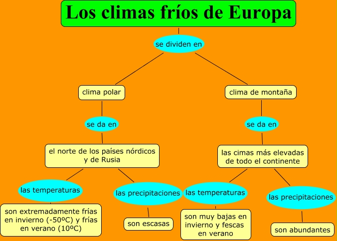 Este Cmap, tiene información relacionada con: Los climas fríos de Europa, el norte de los países nórdicos y de Rusia las precipitaciones son escasas, clima de montaña se da en las cimas más elevadas de todo el continente, clima polar se da en el norte de los países nórdicos y de Rusia, Los climas fríos de Europa se dividen en clima polar, las cimas más elevadas de todo el continente las temperaturas son muy bajas en invierno y fescas en verano, Los climas fríos de Europa se dividen en clima de montaña, las cimas más elevadas de todo el continente las precipitaciones son abundantes, el norte de los países nórdicos y de Rusia las temperaturas son extremadamente frías en invierno (-50ºC) y frías en verano (10ºC)