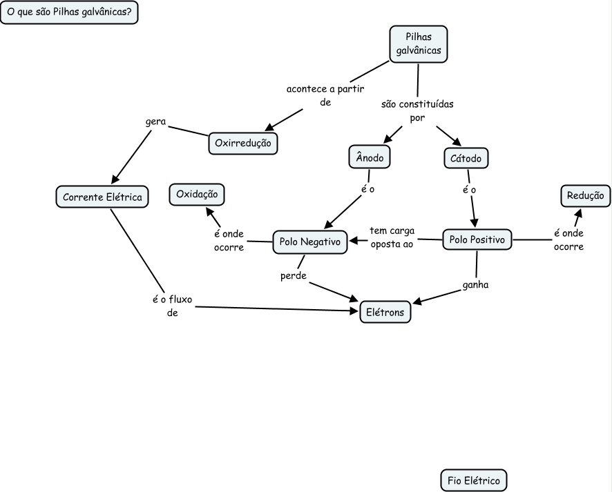 Esse mapa conceitual, produzido no IHMC CmapTools, tem a informação relacionada a: Pilha 2ºD, Oxirredução gera Corrente Elétrica, Polo Positivo é onde ocorre Redução, Polo Negativo é onde ocorre Oxidação, Corrente Elétrica é o fluxo de Elétrons, Polo Positivo tem carga oposta ao Polo Negativo, Polo Positivo ganha Elétrons, Polo Negativo perde Elétrons, Cátodo é o Polo Positivo, Ânodo é o Polo Negativo, Pilhas galvânicas são constituídas por Cátodo, Pilhas galvânicas são constituídas por Ânodo, Pilhas galvânicas acontece a partir de Oxirredução