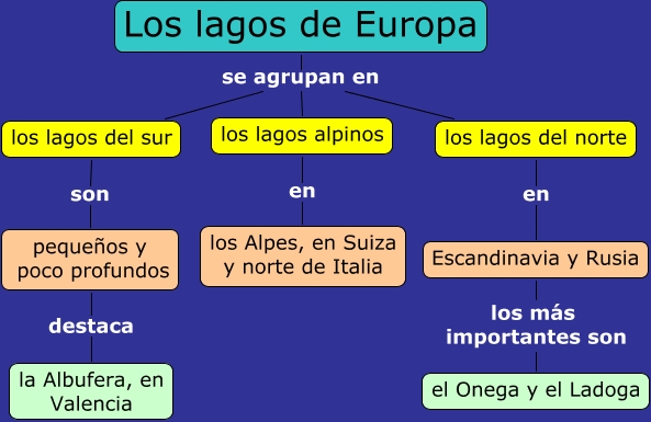 Este Cmap, tiene información relacionada con: Los lagos de Europa, Los lagos de Europa se agrupan en los lagos del sur, Escandinavia y Rusia los más importantes son el Onega y el Ladoga, los lagos alpinos en los Alpes, en Suiza y norte de Italia, Los lagos de Europa se agrupan en los lagos del norte, pequeños y poco profundos destaca la Albufera, en Valencia, Los lagos de Europa se agrupan en los lagos alpinos, los lagos del sur son pequeños y poco profundos, los lagos del norte en Escandinavia y Rusia