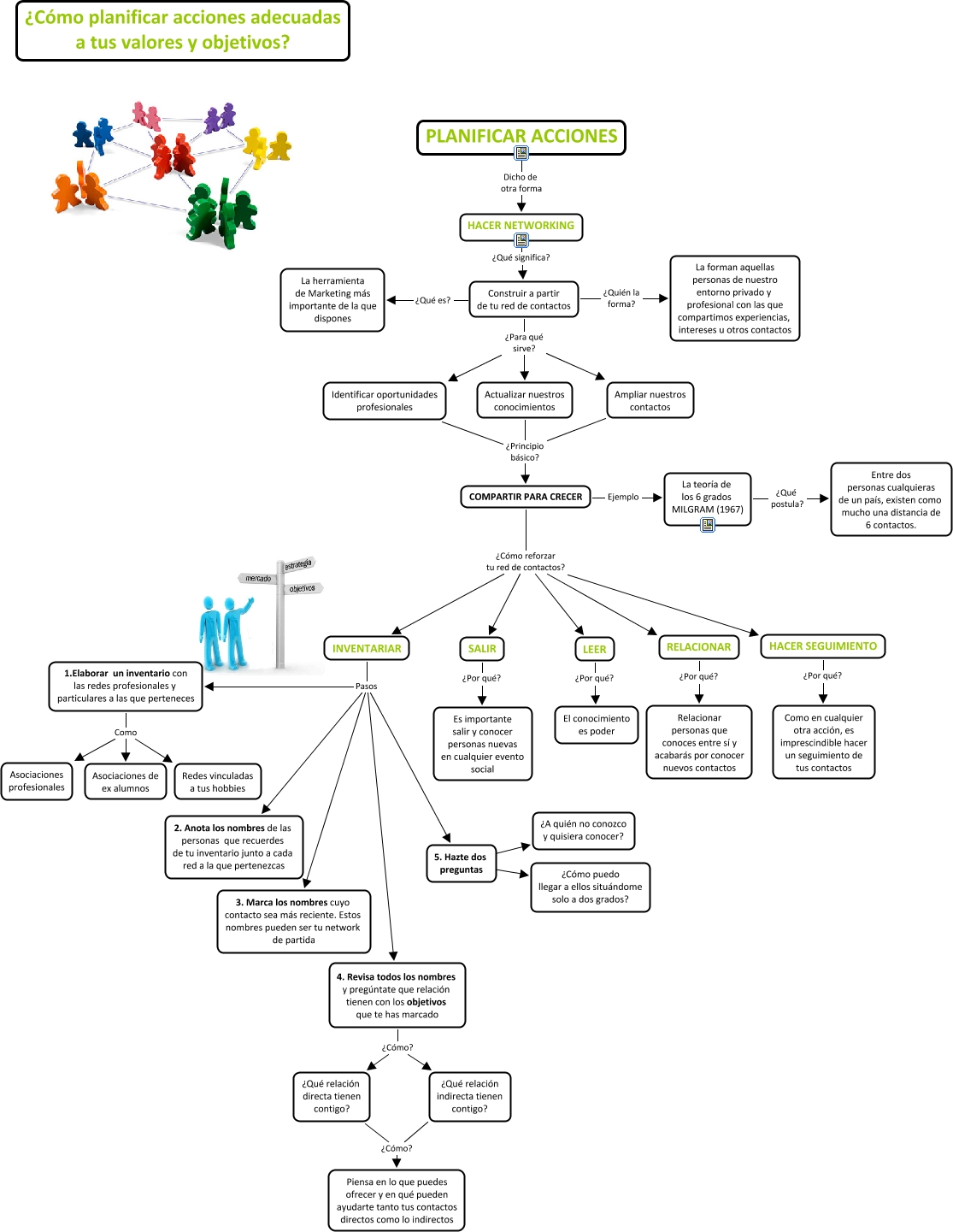 Este Cmap, tiene información relacionada con: Cómo planificar acciones adecuadas a tus valores y objetivos, COMPARTIR PARA CRECER ¿Cómo reforzar tu red de contactos? LEER, Construir a partir de tu red de contactos ¿Quién la forma? La forman aquellas personas de nuestro entorno privado y profesional con las que compartimos experiencias, intereses u otros contactos, Construir a partir de tu red de contactos ¿Para qué sirve? Actualizar nuestros conocimientos, Construir a partir de tu red de contactos ¿Para qué sirve? Ampliar nuestros contactos, COMPARTIR PARA CRECER Ejemplo La teoría de los 6 grados MILGRAM (1967), 1.Elaborar un inventario con las redes profesionales y particulares a las que perteneces Como Asociaciones de ex alumnos, Identificar oportunidades profesionales ¿Principio básico? COMPARTIR PARA CRECER, ¿Qué relación directa tienen contigo? ¿Cómo? Piensa en lo que puedes ofrecer y en qué pueden ayudarte tanto tus contactos directos como lo indirectos, INVENTARIAR Pasos 5. Hazte dos preguntas, COMPARTIR PARA CRECER ¿Cómo reforzar tu red de contactos? RELACIONAR, COMPARTIR PARA CRECER ¿Cómo reforzar tu red de contactos? HACER SEGUIMIENTO, Actualizar nuestros conocimientos ¿Principio básico? COMPARTIR PARA CRECER, 4. Revisa todos los nombres y pregúntate que relación tienen con los objetivos que te has marcado ¿Cómo? ¿Qué relación indirecta tienen contigo?, Construir a partir de tu red de contactos ¿Qué es? La herramienta de Marketing más importante de la que dispones, HACER NETWORKING ¿Qué significa? Construir a partir de tu red de contactos, 5. Hazte dos preguntas ???? ¿A quién no conozco y quisiera conocer?, PLANIFICAR ACCIONES Dicho de otra forma HACER NETWORKING, COMPARTIR PARA CRECER ¿Cómo reforzar tu red de contactos? SALIR, INVENTARIAR Pasos 1.Elaborar un inventario con las redes profesionales y particulares a las que perteneces, 1.Elaborar un inventario con las redes profesionales y particulares a las que perteneces Como Asociaciones profesionales