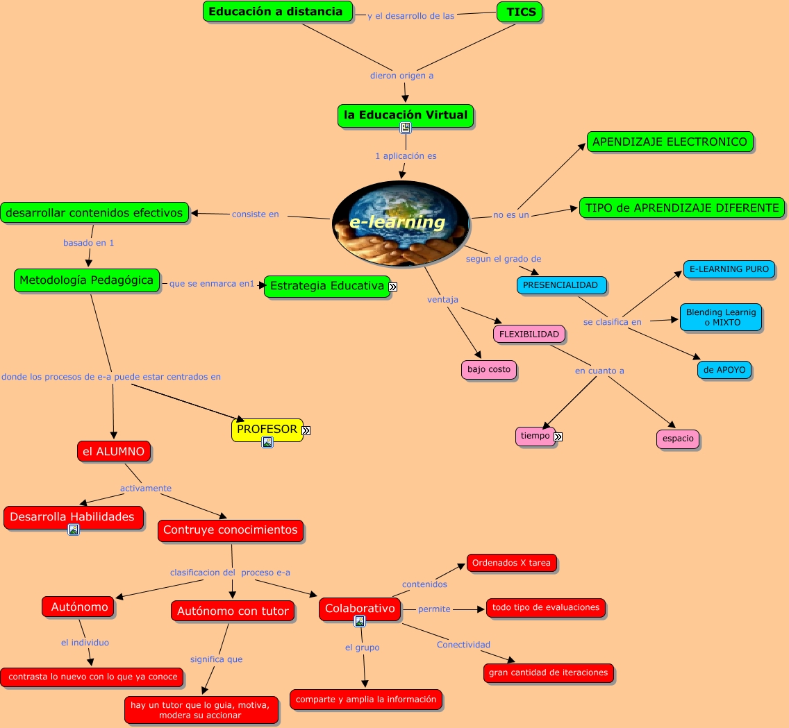 Este Cmap, tiene información relacionada con: e-learnig franco alejandro daniel, desarrollar contenidos efectivos basado en 1 Metodología Pedagógica, el ALUMNO activamente Contruye conocimientos, Metodología Pedagógica que se enmarca en1 precisa, Autónomo el individuo contrasta lo nuevo con lo que ya conoce, Colaborativo permite todo tipo de evaluaciones, Autónomo con tutor significa que hay un tutor que lo guia, motiva, modera su accionar, Contruye conocimientos clasificacion del proceso e-a Colaborativo, e-learning consiste en desarrollar contenidos efectivos, FLEXIBILIDAD en cuanto a comunicacion sincrónica, el ALUMNO activamente Desarrolla Habilidades, Metodología Pedagógica donde los procesos de e-a puede estar centrados en el alumno es Pasivo, Educación a distancia y el desarrollo de las TICS, Educación a distancia dieron origen a TICS, e-learning no es un TIPO de APRENDIZAJE DIFERENTE, e-learning segun el grado de PRESENCIALIDAD, Colaborativo el grupo comparte y amplia la información, PRESENCIALIDAD se clasifica en E-LEARNING PURO, Metodología Pedagógica donde los procesos de e-a puede estar centrados en es él, el que mas aprende, e-learning ventaja FLEXIBILIDAD, Metodología Pedagógica donde los procesos de e-a puede estar centrados en el decide que y como aprender
