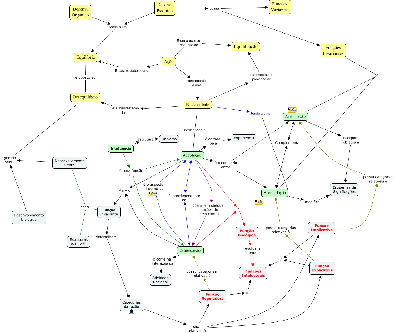 Esse mapa conceitual, produzido no IHMC CmapTools, tem a informação relacionada a: Equilibração3, Necessidade tende a uma Acomodação, Funçao Implicativa é Funções Intelectuais, Categorias da razão são relativas à Funçao Implicativa, Função Invariante determinam Categorias da razão, Acomodação modifica Esquemas de Significações, Organização o corre na interação da Atividade Racional, Acomodação é Funções Invariantes, Assimilação é Funções Invariantes, Inteligencia estrutura Universo, Adaptação é o equilibrio entre Acomodação, Adaptação é o equilibrio entre Assimilação, Organização é uma Função Invariante, Necessidade tende a uma Assimilação, Equilíbrio é oposto ao Desequilíbrio, Função Explicativa é Funções Intelectuais, Ação É para restabelecer o Equilíbrio, Inteligencia é uma função de Organização, Organização é o aspecto interno da Adaptação, Desenv. Psiquico possui Funções Variantes, Função Explicativa possui categorias relativas à Acomodação