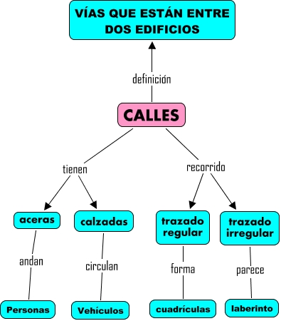 Este Cmap, tiene información relacionada con: calles, aceras andan Personas, CALLES recorrido trazado regular, CALLES definición VÍAS QUE ESTÁN ENTRE DOS EDIFICIOS, trazado regular forma cuadrículas, calzadas circulan Vehículos, CALLES recorrido trazado irregular, CALLES tienen aceras, trazado irregular parece laberinto, CALLES tienen calzadas