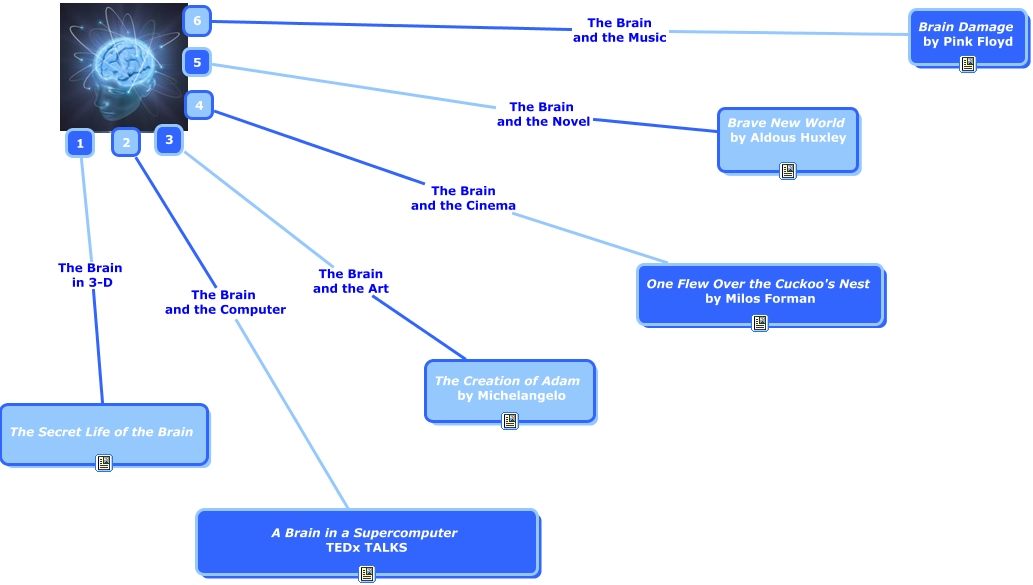 Questa Cmap, creata con IHMC CmapTools, contiene informazioni relative a: Brain CLIL, 5 The Brain and the Novel Brave New World by Aldous Huxley, The Secret Life of the Brain The Brain in 3-D 1, The Creation of Adam by Michelangelo The Brain and the Art 3, One Flew Over the Cuckoo's Nest by Milos Forman The Brain and the Cinema 4, Brain Damage by Pink Floyd The Brain and the Music 6, A Brain in a Supercomputer TEDx TALKS The Brain and the Computer 2