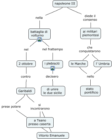 Questa Cmap, creata con IHMC CmapTools, contiene informazioni relative a: marche, umbria le due sicilie sono annesse al piemonte, napoleone III nella battaglia di volturno, napoleone III diede il consenso ai militari piemontesi, battaglia di volturno nel 2 ottobre, Garibaldi si incontrarono a Teano presso caserta, le Marche nello stato pontificio, i plebisciti decisero di unire le due sicilie, Vitorio Emanuele si incontrarono a Teano presso caserta, battaglia di volturno nel frattempo i plebisciti, ai militari piemontesi che conquistarono le Marche, 2 ottobre contro Garibaldi, ai militari piemontesi che conquistarono l' Umbria, Garibaldi prese potere Vitorio Emanuele, l' Umbria nello stato pontificio
