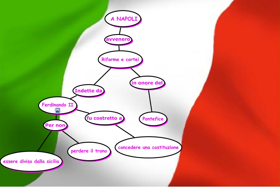 Questa Cmap, creata con IHMC CmapTools, contiene informazioni relative a: I principi italiani concedono riforme e costituzioni.II D Anna, A NAPOLI avvenero Riforme e cortei, Riforme e cortei Indette da Ferdinando II, Ferdinando II Per non essere diviso dalla sicilia, Ferdinando II Per non perdere il trono, Ferdinando II fu costretto a concedere una costituzione, Riforme e cortei in onore del Pontefice