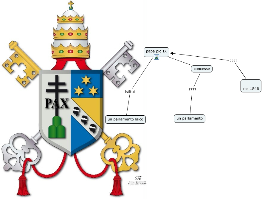 Questa Cmap, creata con IHMC CmapTools, contiene informazioni relative a: 04) esercito del nuovo papa pio9, nel 1846 ???? papa pio IX, papa pio IX istituì un parlamento laico, papa pio IX ???? concesse, concesse ???? un parlamento