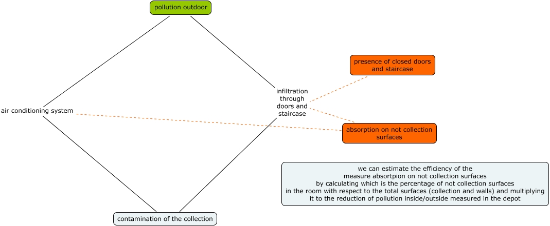 This Concept Map, created with IHMC CmapTools, has information related to: KB_room_xx, pollution outdoor infiltration through doors and staircase contamination of the collection, absorption on not collection surfaces infiltration through doors and staircase contamination of the collection, absorption on not collection surfaces air conditioning system contamination of the collection, presence of closed doors and staircase infiltration through doors and staircase contamination of the collection, pollution outdoor air conditioning system contamination of the collection