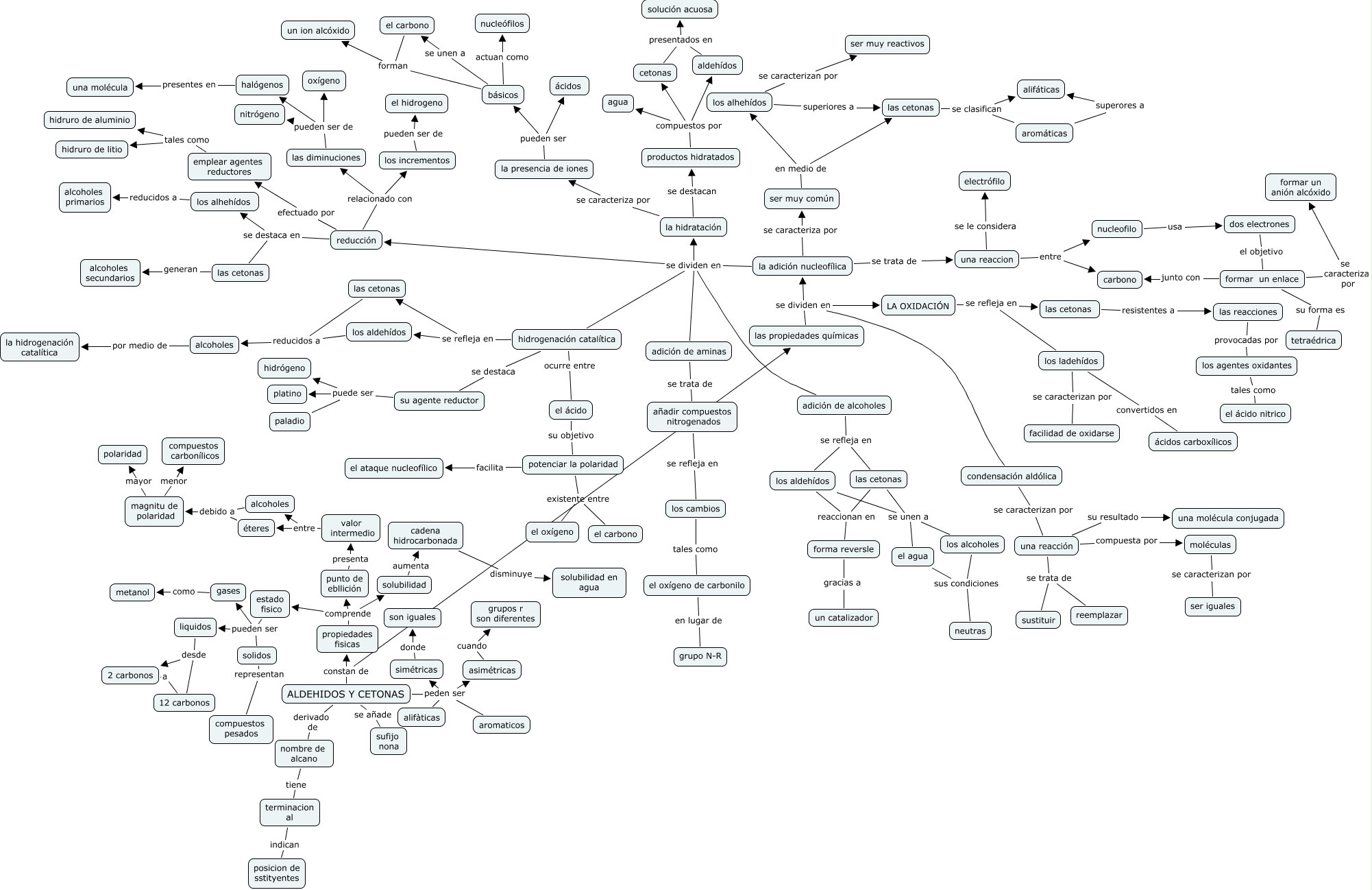 Este Cmap, tiene información relacionada con: emilly lasso aldehidos y acetonas 11 b, reducción efectuado por emplear agentes reductores, formar un enlace su forma es tetraédrica, añadir compuestos nitrogenados se refleja en los cambios, alcoholes por medio de la hidrogenación catalítica, estado fisico pueden ser liquidos, las reacciones provocadas por los agentes oxidantes, el carbono forman un ion alcóxido, la adición nucleofílica se caracteriza por ser muy común, su agente reductor puede ser hidrógeno, propiedades fisicas comprende estado fisico, las cetonas reducidos a alcoholes, las diminuciones pueden ser de halógenos, cetonas presentados en solución acuosa, los aldehídos se unen a los alcoholes, los alhehídos se caracterizan por ser muy reactivos, LA OXIDACIÓN se refleja en las cetonas, una reaccion entre nucleofilo, éteres debido a magnitu de polaridad, magnitu de polaridad mayor polaridad, alcoholes debido a magnitu de polaridad