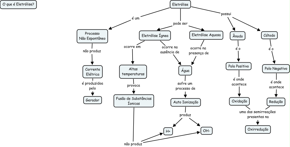Esse mapa conceitual, produzido no IHMC CmapTools, tem a informação relacionada a: Eletrólise 2C, Eletrólise Ígnea ocorre na ausência de Água, Processo Não Espontâneo não produz Corrente Elétrica, Altas temperaturas provoca Fusão de Substâncias Íonicas, Auto Ionização produz OH-, Redução uma das semirreações presentes na Oxirredução, Auto Ionização produz H+, Fusão de Substâncias Íonicas não produz OH-, Polo Negativo é onde acontece Redução, Eletrólise possui Cátodo, Eletrólise pode ser Eletrólise Aquosa, Eletrólise possui Ânodo, Eletrólise Ígnea ocorre em Altas temperaturas, Ânodo é o Polo Positivo, Corrente Elétrica é produzidoa pelo Gerador, Água sofre um processo de Auto Ionização, Eletrólise Aquosa ocorre na presença de Água, Polo Positivo é onde acontece Oxidação, Eletrólise pode ser Eletrólise Ígnea, Eletrólise é um Processo Não Espontâneo, Oxidação uma das semirreações presentes na Oxirredução