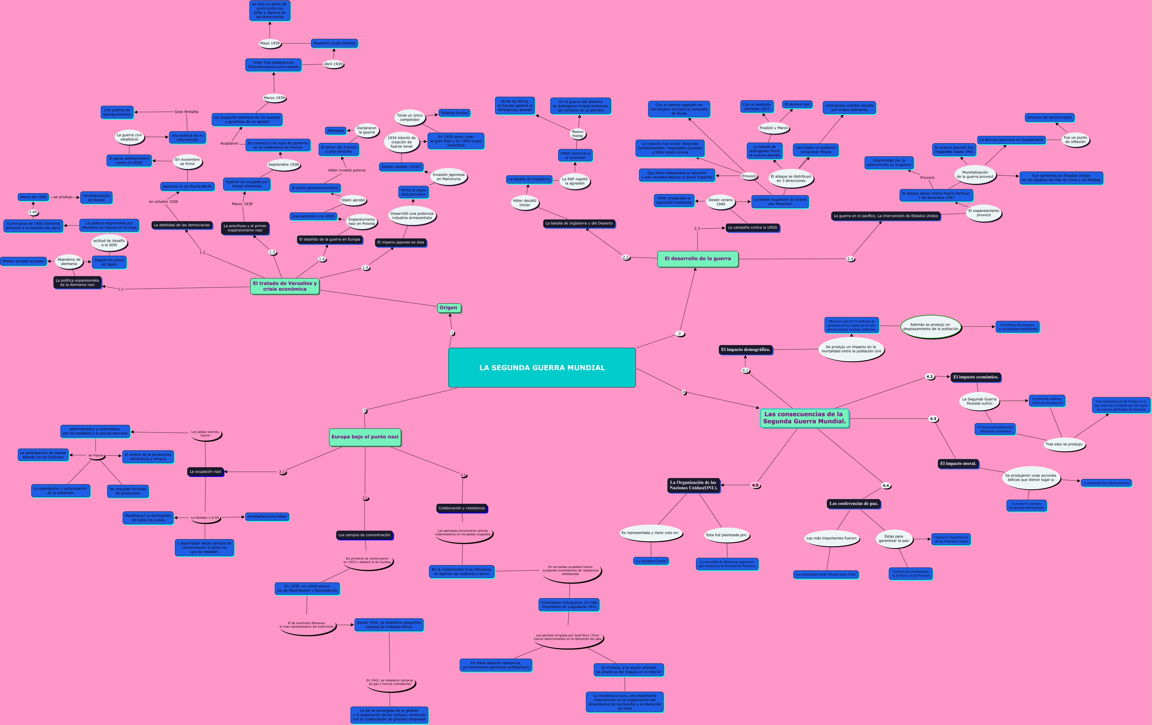 Este Cmap, tiene información relacionada con: tema 1022, LA SEGUNDA GUERRA MUNDIAL 3 Europa bajo el punto nazi, La ocupación alemana de los sudetes y garantías de no agredir Marzo 1939 Hitler hizo desaparecer Checoslovaquia como estado, El impacto moral. Se produjeron unas acciones bélicas que dieron lugar a: A un nuevo concepto de derecho internacional., Las consecuencias de la Segunda Guerra Mundial. 4.4 Las conferencias de paz., La fallida ocupación de Grecia por Mussolini El ataque se distribuyó en 3 direcciones Leningnado resistía situada por tropas alemanas, Acercamiento a la URSS Stalin aprobó El pacto germanosoviético, En Francia, a la acción antinazi se añadió la del maquis en el interior ???? La resistencia tuvo, una importante intervención en la organización del desembarco de normandia y la liberación de París, Al final del conflicto sufrió una devastación Tras esto se produjo: Una reconstrucción de Europa en la que intervino el Estado que dió lugara la creación del Estado de bienestar., Seguía los pasos de Japón actitud de desafío a la SDN La política emprendida por Alemania se impuso en Europa, En 1938 quiso crear la gran Asia y en 1940 ocupó Indochina Tenía un único competidor Estados Unidos, Las consecuencias de la Segunda Guerra Mundial. 4.5 La Organización de las Naciones Unidas(ONU)., La fallida ocupación de Grecia por Mussolini El ataque se distribuyó en 3 direcciones La batalla de stalingnado frenó el avance alemán, Al tercer día Francia y gran Bretaña Declararon la guerra Alemania, La política expansionista de la Alemania nazi Abandono de alemania Seguía los pasos de Japón, El estallido de la guerra en Europa Expansionismo nazi en Polonia Acercamiento a la URSS, Origen ???? El tratado de Versalles y crisis económica, El impacto demográfico. Se produjo un impacto en la mortalidad entre la población civil Murieron más de 55 millones de personas, de las cuales un elevado número fueron victimas indirectas., El impacto económico. La Segunda Guerra Mundial sufrió: Al final del conflicto sufrió una devastación, A principios de 1935 alemania procedió a la anexión del sarre y en Marzo de 1936, La fallida ocupación de Grecia por Mussolini Provocó Que Hitler desplazara su atención y una revuelta depuso el pacto tripartito