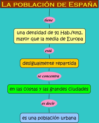 Este Cmap, tiene información relacionada con: La distribución de la población española, en las costas y las grandes ciudades es decir es una población urbana, La población de España tiene una densidad de 91 Hab./km2, mayor que la media de Europa, una densidad de 91 Hab./km2, mayor que la media de Europa está desigualmente repartida, desigualmente repartida se concentra en las costas y las grandes ciudades