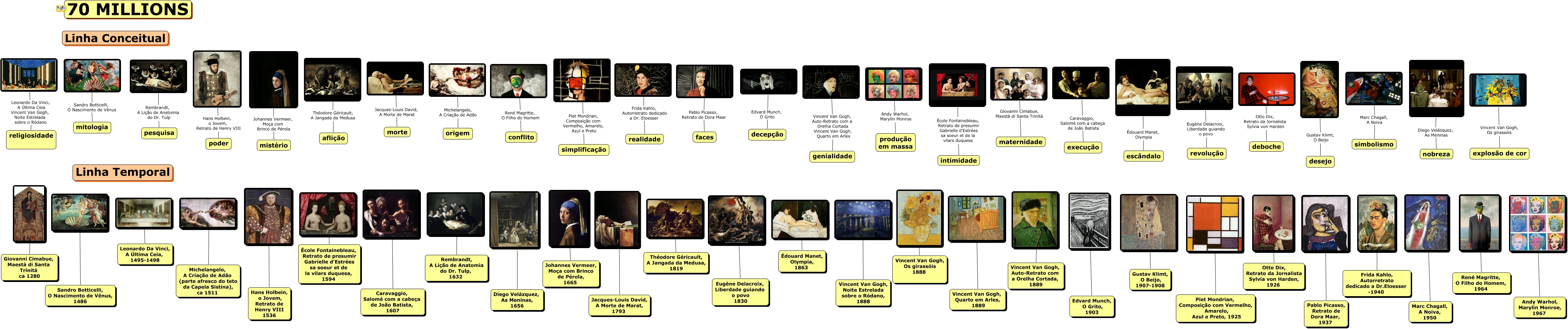 Esse mapa conceitual, produzido no IHMC CmapTools, tem a informação relacionada a: 70 MILLIONS, Marc Chagall, A Noiva simbolismo, Eugène Delacroix, Liberdade guiando o povo revolução, Gustav Klimt, O Beijo desejo, ???? Pablo Picasso, Retrato de Dora Maar, 1937, ???? Théodore Géricault, A Jangada da Medusa, 1819, ???? Caravaggio, Salomé com a cabeça de João Batista, 1607, Vincent Van Gogh, Os girassóis explosão de cor, Frida Kahlo, Autorretrato dedicado a Dr. Eloesser realidade, Piet Mondrian, Composição com Vermelho, Amarelo, Azul e Preto simplificação, René Magritte, O Filho do Homem conflito, Leonardo Da Vinci, A Última Ceia Vincent Van Gogh, Noite Estrelada sobre o Ródano religiosidade, ???? Hans Holbein, o Jovem, Retrato de Henry VIII 1536, ???? Johannes Vermeer, Moça com Brinco de Pérola, 1665, ???? Piet Mondrian, Composição com Vermelho, Amarelo, Azul e Preto, 1925, Caravaggio, Salomé com a cabeça de João Batista execução, Vincent Van Gogh, Auto-Retrato com a Orelha Cortada Vincent Van Gogh, Quarto em Arles genialidade, ???? Frida Kahlo, Autorretrato dedicado a Dr.Eloesser -1940, Giovanni Cimabue, Maestà di Santa Trinità maternidade, ???? Jacques-Louis David, A Morte de Marat, 1793, Théodore Géricault, A Jangada da Medusa aflição