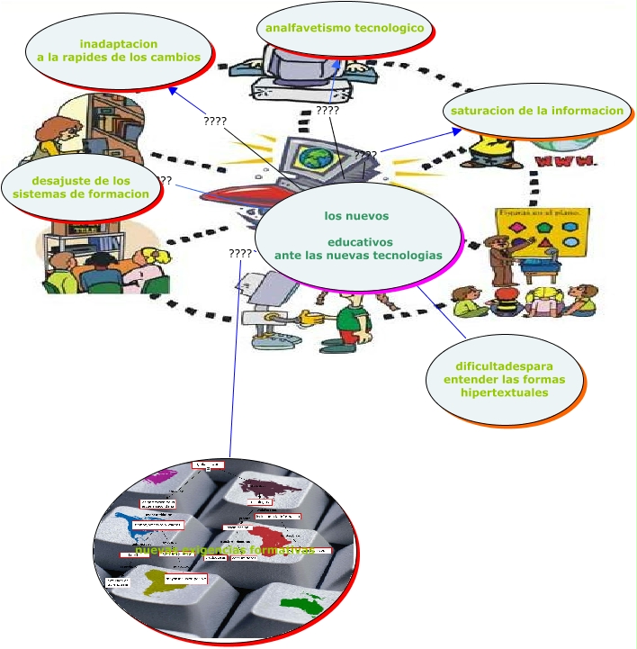 Este Cmap, tiene información relacionada con: los nuevos problema educativos, los nuevos educativos ante las nuevas tecnologias ???? analfavetismo tecnologico, los nuevos educativos ante las nuevas tecnologias ???? dificultadespara entender las formas hipertextuales, los nuevos educativos ante las nuevas tecnologias ???? inadaptacion a la rapides de los cambios, los nuevos educativos ante las nuevas tecnologias ???? desajuste de los sistemas de formacion, los nuevos educativos ante las nuevas tecnologias ???? saturacion de la informacion, los nuevos educativos ante las nuevas tecnologias ???? nuevas exigencias formativas