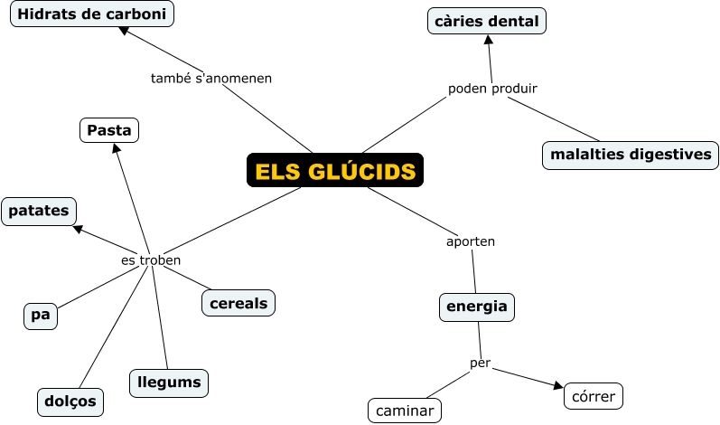Este Cmap, tiene información relacionada con: L'ALIMENTACIÓ, ELS GLÚCIDS es troben dolços, ELS GLÚCIDS es troben pa, ELS GLÚCIDS aporten energia, energia per córrer, ELS GLÚCIDS es troben Pasta, ELS GLÚCIDS es troben llegums, ELS GLÚCIDS poden produir càries dental, energia per caminar, ELS GLÚCIDS també s'anomenen Hidrats de carboni, ELS GLÚCIDS es troben patates, ELS GLÚCIDS es troben cereals, ELS GLÚCIDS poden produir malalties digestives
