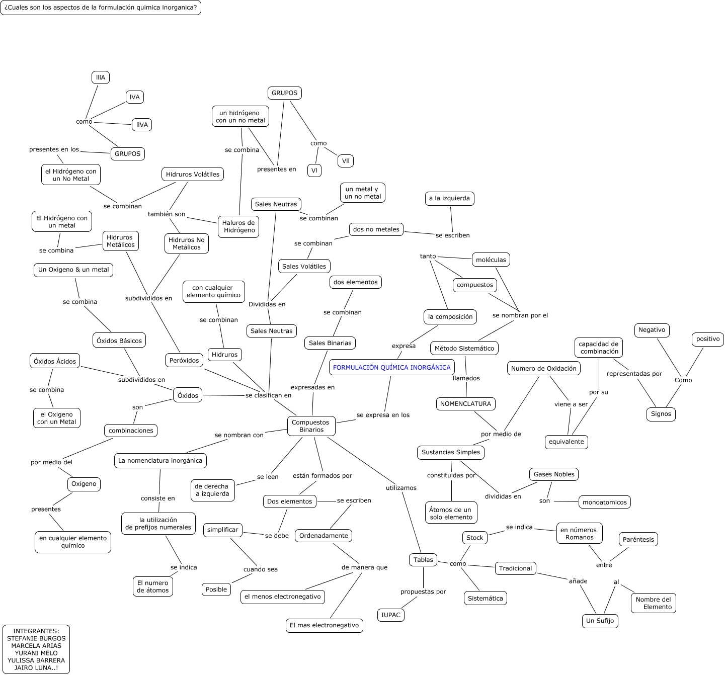 Este Cmap, tiene información relacionada con: revisar química, Hidruros se combinan con cualquier elemento químico, la composición tanto moléculas, NOMENCLATURA por medio de Numero de Oxidación, Haluros de Hidrógeno se combina un hidrógeno con un no metal, Compuestos Binarios están formados por Dos elementos, Sales Neutras Divididas en Sales Neutras, el Hidrógeno con un No Metal presentes en los GRUPOS, Ordenadamente de manera que El mas electronegativo, Gases Nobles son monoatomicos, Hidruros No Metálicos también son Haluros de Hidrógeno, simplificar cuando sea Posible, Vl como GRUPOS, Compuestos Binarios se clasifican en Peróxidos, FORMULACIÓN QUÍMICA INORGÁNICA se expresa en los Compuestos Binarios, dos no metales se escriben a la izquierda, Óxidos subdivididos en Óxidos Básicos, Óxidos Ácidos se combina el Oxigeno con un Metal, GRUPOS como lllA, GRUPOS como llVA, NOMENCLATURA por medio de Sustancias Simples