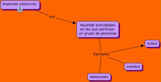 Este Cmap, tiene información relacionada con: deportes colectivos, Aquellas actividades en las que participa un grupo de personas Ejemplos voleibol, Aquellas actividades en las que participa un grupo de personas Ejemplos baloncesto, Aquellas actividades en las que participa un grupo de personas Ejemplos futbol, Deportes colectivos son Aquellas actividades en las que participa un grupo de personas
