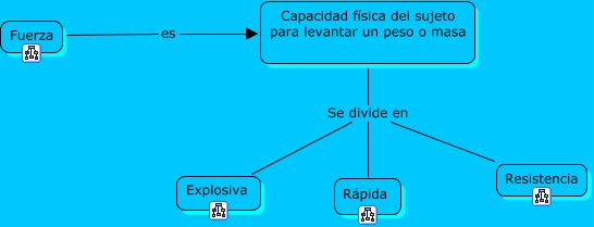 Este Cmap, tiene información relacionada con: fuerza, Capacidad física del sujeto para levantar un peso o masa Se divide en Rápida, Capacidad física del sujeto para levantar un peso o masa Se divide en Explosiva, Fuerza es Capacidad física del sujeto para levantar un peso o masa, Capacidad física del sujeto para levantar un peso o masa Se divide en Resistencia, Fuerza es Capacidad física del sujeto para levantar un peso o masa