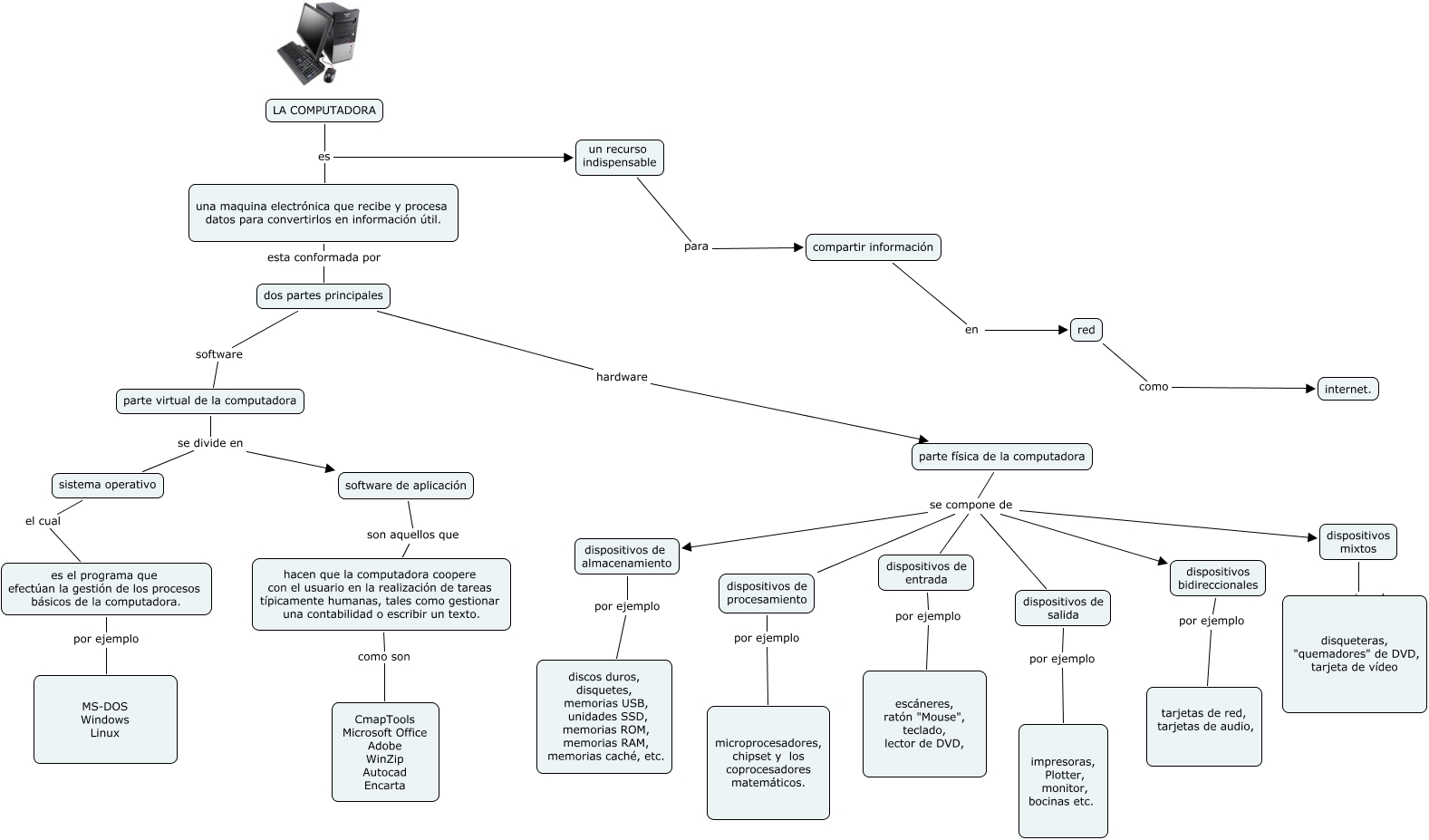 Este Cmap, tiene información relacionada con: BRIAN MC-PC (1).cmap, una maquina electrónica que recibe y procesa datos para convertirlos en información útil. esta conformada por dos partes principales, es el programa que efectúan la gestión de los procesos básicos de la computadora. por ejemplo MS-DOS Windows Linux, dos partes principales hardware parte física de la computadora, dos partes principales software parte virtual de la computadora, parte física de la computadora se compone de dispositivos de entrada, dispositivos de entrada por ejemplo escáneres, ratón "Mouse", teclado, lector de DVD,, dispositivos mixtos por ejemplo disqueteras, "quemadores" de DVD, tarjeta de vídeo, parte física de la computadora se compone de dispositivos bidireccionales, parte virtual de la computadora se divide en software de aplicación, red como internet., parte física de la computadora se compone de dispositivos de procesamiento, LA COMPUTADORA es un recurso indispensable, dispositivos de procesamiento por ejemplo microprocesadores, chipset y los coprocesadores matemáticos., parte física de la computadora se compone de dispositivos mixtos, dispositivos de almacenamiento por ejemplo discos duros, disquetes, memorias USB, unidades SSD, memorias ROM, memorias RAM, memorias caché, etc., dispositivos bidireccionales por ejemplo tarjetas de red, tarjetas de audio,, hacen que la computadora coopere con el usuario en la realización de tareas típicamente humanas, tales como gestionar una contabilidad o escribir un texto. como son CmapTools Microsoft Office Adobe WinZip Autocad Encarta, dispositivos de salida por ejemplo impresoras, Plotter, monitor, bocinas etc., parte física de la computadora se compone de dispositivos de salida, un recurso indispensable para compartir información