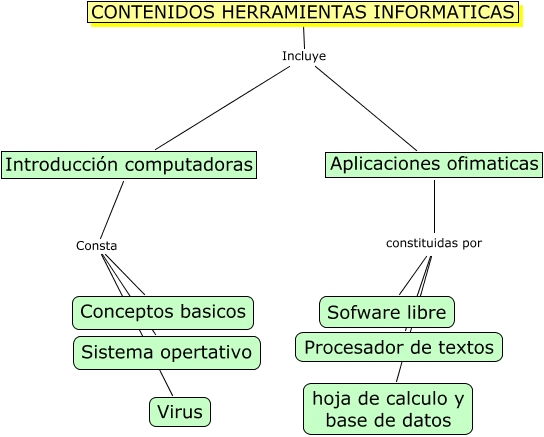 Este Cmap, tiene información relacionada con: contenidos herram, Introducción computadoras Consta Sistema opertativo, CONTENIDOS HERRAMIENTAS INFORMATICAS Incluye Aplicaciones ofimaticas, CONTENIDOS HERRAMIENTAS INFORMATICAS Incluye Introducción computadoras, Aplicaciones ofimaticas constituidas por Sofware libre, Introducción computadoras Consta Conceptos basicos, Aplicaciones ofimaticas constituidas por hoja de calculo y base de datos, Introducción computadoras Consta Virus, Aplicaciones ofimaticas constituidas por Procesador de textos