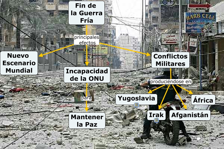 Este Cmap, tiene información relacionada con: Sub mapa fin de la guerra fría, Conflictos Militares produciéndose en Afganistán, Conflictos Militares produciéndose en África, Incapacidad de la ONU para Mantener la Paz, Fin de la Guerra Fría principales efectos Conflictos Militares, Conflictos Militares produciéndose en Yugoslavia, Fin de la Guerra Fría principales efectos Nuevo Escenario Mundial, Conflictos Militares produciéndose en Irak, Fin de la Guerra Fría principales efectos Incapacidad de la ONU