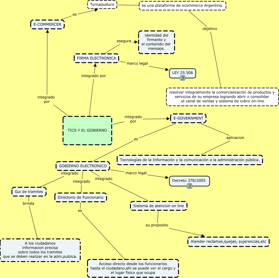 Este Cmap, tiene información relacionada con: gobierno electronico, GOBIERNO ELECTRONICO integrado Gui de tramites, TICS Y EL GOBIERNO integrado por E-GOVERNMENT, Gui de tramites brinda A los ciudadanos informacion precisa sobre todos los tramites que se deben realizar en la adm.publica., GOBIERNO ELECTRONICO marco legal Decreto 378/2005, Sistema de atencion on line su proposito Atender reclamos,quejas, sujerencias,etc, es una plataforma de ecommerce Argentina. objetivo resolver integralmente la comercialización de productos y servicios de su empresa logrando abrir o consolidar el canal de ventas y sistema de cobro on-line, E-GOVERNMENT es GOBIERNO ELECTRONICO, TICS Y EL GOBIERNO integrado por FIRMA ELECTRONICA, GOBIERNO ELECTRONICO integrado Sistema de atencion on line, Tornadostore es es una plataforma de ecommerce Argentina., TICS Y EL GOBIERNO integrado por E-COMMERCER, FIRMA ELECTRONICA asegura identidad del firmante y el contenido del mensaje., E-GOVERNMENT aplicacion Tecnologías de la Información y la comunicación a la administración pública., GOBIERNO ELECTRONICO integrado Directorio de Funcionario, FIRMA ELECTRONICA marco legal LEY 25.506, E-COMMERCER es Tornadostore, Directorio de Funcionario es Acceso directo desde los funcionarios hasta el ciudadano,ahi se puede ver el cargo y el lugar fisico que ocupa