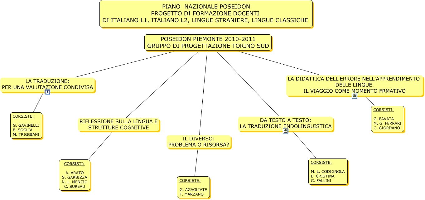 Questa Cmap, creata con IHMC CmapTools, contiene informazioni relative a: Poseidon Torino Sud, POSEIDON PIEMONTE 2010-2011 GRUPPO DI PROGETTAZIONE TORINO SUD LA TRADUZIONE: PER UNA VALUTAZIONE CONDIVISA CORSISTE: G. GAVINELLI E. SOGLIA M. TRIGGIANI, POSEIDON PIEMONTE 2010-2011 GRUPPO DI PROGETTAZIONE TORINO SUD LA DIDATTICA DELL'ERRORE NELL'APPRENDIMENTO DELLE LINGUE. IL VIAGGIO COME MOMENTO FRMATIVO CORSISTI: G. FAVATA M. G. FERRARI C. GIORDANO, POSEIDON PIEMONTE 2010-2011 GRUPPO DI PROGETTAZIONE TORINO SUD IL DIVERSO: PROBLEMA O RISORSA? CORSISTE: G. AGAGLIATE F. MARZANO, POSEIDON PIEMONTE 2010-2011 GRUPPO DI PROGETTAZIONE TORINO SUD DA TESTO A TESTO: LA TRADUZIONE ENDOLINGUISTICA CORSISTE: M. L. CODIGNOLA E. CRISTINA G. FALLINI, POSEIDON PIEMONTE 2010-2011 GRUPPO DI PROGETTAZIONE TORINO SUD RIFLESSIONE SULLA LINGUA E STRUTTURE COGNITIVE CORSISTI: A. ARATO S. GARBIZZA N. L. MENZIO C. SUREAU