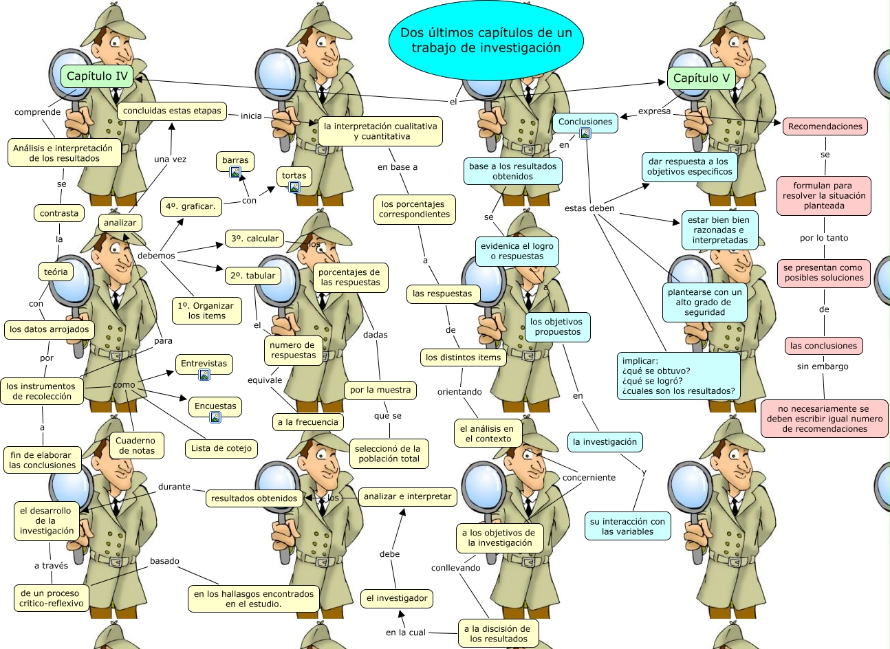 Este Cmap, tiene información relacionada con: ultimos 2 capitulos de un informe de investigacion, los instrumentos de recolección como Cuaderno de notas, a la discisión de los resultados en la cual el investigador, Dos últimos capítulos de un trabajo de investigación el Capítulo V, 4º. graficar. con barras, contrasta la teória, 4º. graficar. con tortas, analizar debemos 1º. Organizar los items, los instrumentos de recolección como Lista de cotejo, el investigador debe analizar e interpretar, Análisis e interpretación de los resultados se contrasta, evidenica el logro o respuestas a los objetivos propuestos, la interpretación cualitativa y cuantitativa en base a los porcentajes correspondientes, la investigación y su interacción con las variables, analizar una vez concluidas estas etapas, los instrumentos de recolección como Encuestas, los datos arrojados por los instrumentos de recolección, los porcentajes correspondientes a las respuestas, Capítulo IV comprende Análisis e interpretación de los resultados, analizar debemos 4º. graficar., los objetivos propuestos en la investigación