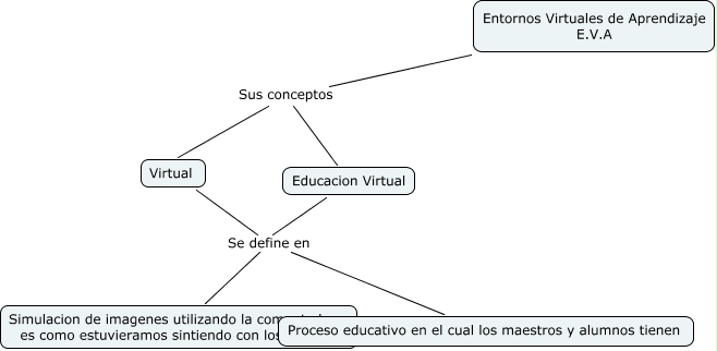 Este Cmap, tiene información relacionada con: Eva, Entornos Virtuales de Aprendizaje E.V.A Sus conceptos Educacion Virtual, Entornos Virtuales de Aprendizaje E.V.A Sus conceptos Virtual, Virtual Se define en Proceso educativo en el cual los maestros y alumnos tienen, Virtual Se define en Simulacion de imagenes utilizando la computadora, es como estuvieramos sintiendo con los sentidos, Educacion Virtual Se define en Simulacion de imagenes utilizando la computadora, es como estuvieramos sintiendo con los sentidos, Educacion Virtual Se define en Proceso educativo en el cual los maestros y alumnos tienen
