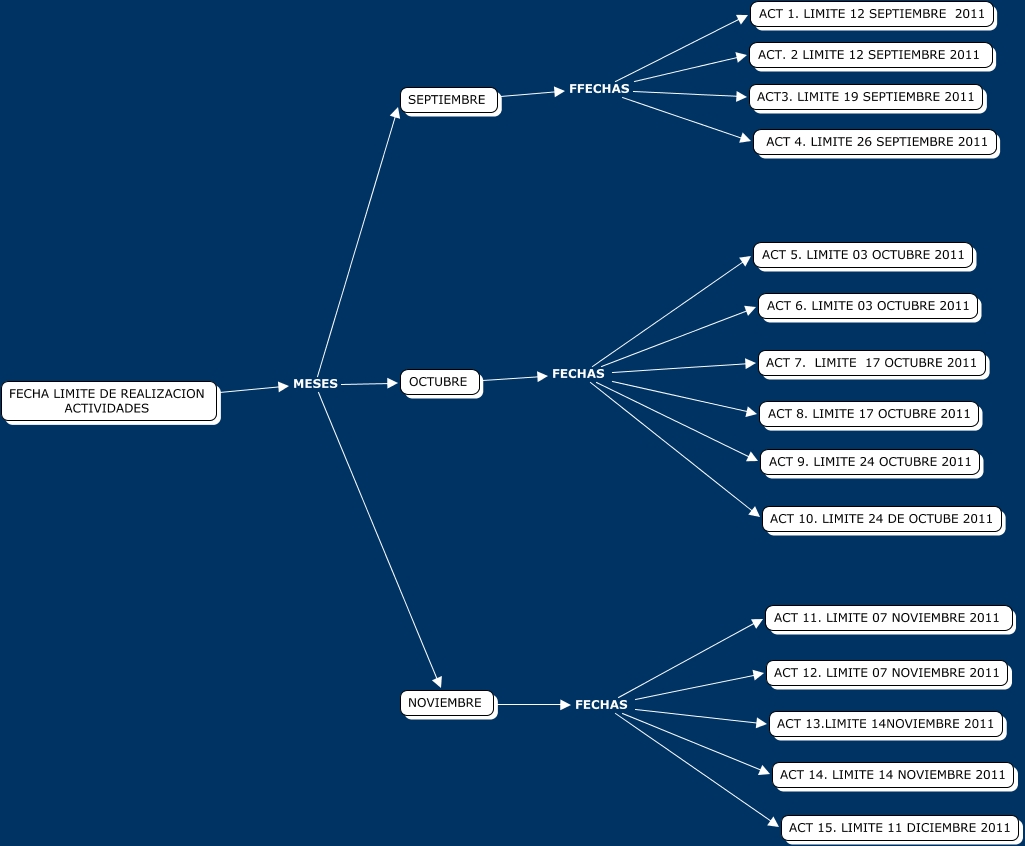 Este Cmap, tiene información relacionada con: FECHAS LIMITES, SEPTIEMBRE FFECHAS ACT 1. LIMITE 12 SEPTIEMBRE 2011, NOVIEMBRE FECHAS ACT 11. LIMITE 07 NOVIEMBRE 2011, OCTUBRE FECHAS ACT 7. LIMITE 17 OCTUBRE 2011, SEPTIEMBRE FFECHAS ACT. 2 LIMITE 12 SEPTIEMBRE 2011, FECHA LIMITE DE REALIZACION ACTIVIDADES MESES NOVIEMBRE, NOVIEMBRE FECHAS ACT 14. LIMITE 14 NOVIEMBRE 2011, OCTUBRE FECHAS ACT 8. LIMITE 17 OCTUBRE 2011, NOVIEMBRE FECHAS ACT 12. LIMITE 07 NOVIEMBRE 2011, NOVIEMBRE FECHAS ACT 15. LIMITE 11 DICIEMBRE 2011, OCTUBRE FECHAS ACT 6. LIMITE 03 OCTUBRE 2011, NOVIEMBRE FECHAS ACT 13.LIMITE 14NOVIEMBRE 2011, FECHA LIMITE DE REALIZACION ACTIVIDADES MESES SEPTIEMBRE, OCTUBRE FECHAS ACT 9. LIMITE 24 OCTUBRE 2011, SEPTIEMBRE FFECHAS ACT 4. LIMITE 26 SEPTIEMBRE 2011, FECHA LIMITE DE REALIZACION ACTIVIDADES MESES OCTUBRE, OCTUBRE FECHAS ACT 5. LIMITE 03 OCTUBRE 2011, OCTUBRE FECHAS ACT 10. LIMITE 24 DE OCTUBE 2011, SEPTIEMBRE FFECHAS ACT3. LIMITE 19 SEPTIEMBRE 2011