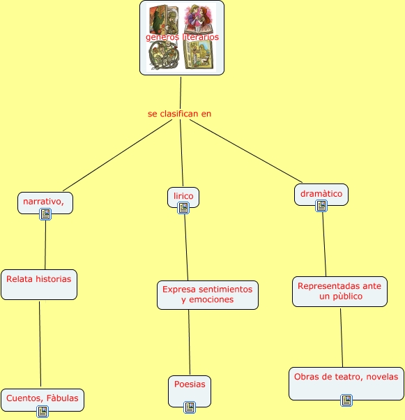 Este Cmap, tiene información relacionada con: gèneros literarios, generos literarios se clasifican en dramàtico, narrativo, Relata historias, dramàtico ???? Representadas ante un pùblico, Relata historias ???? Cuentos, Fàbulas, generos literarios se clasifican en lirico, lirico ???? Poesias, generos literarios se clasifican en narrativo,, Representadas ante un pùblico ???? Obras de teatro, novelas
